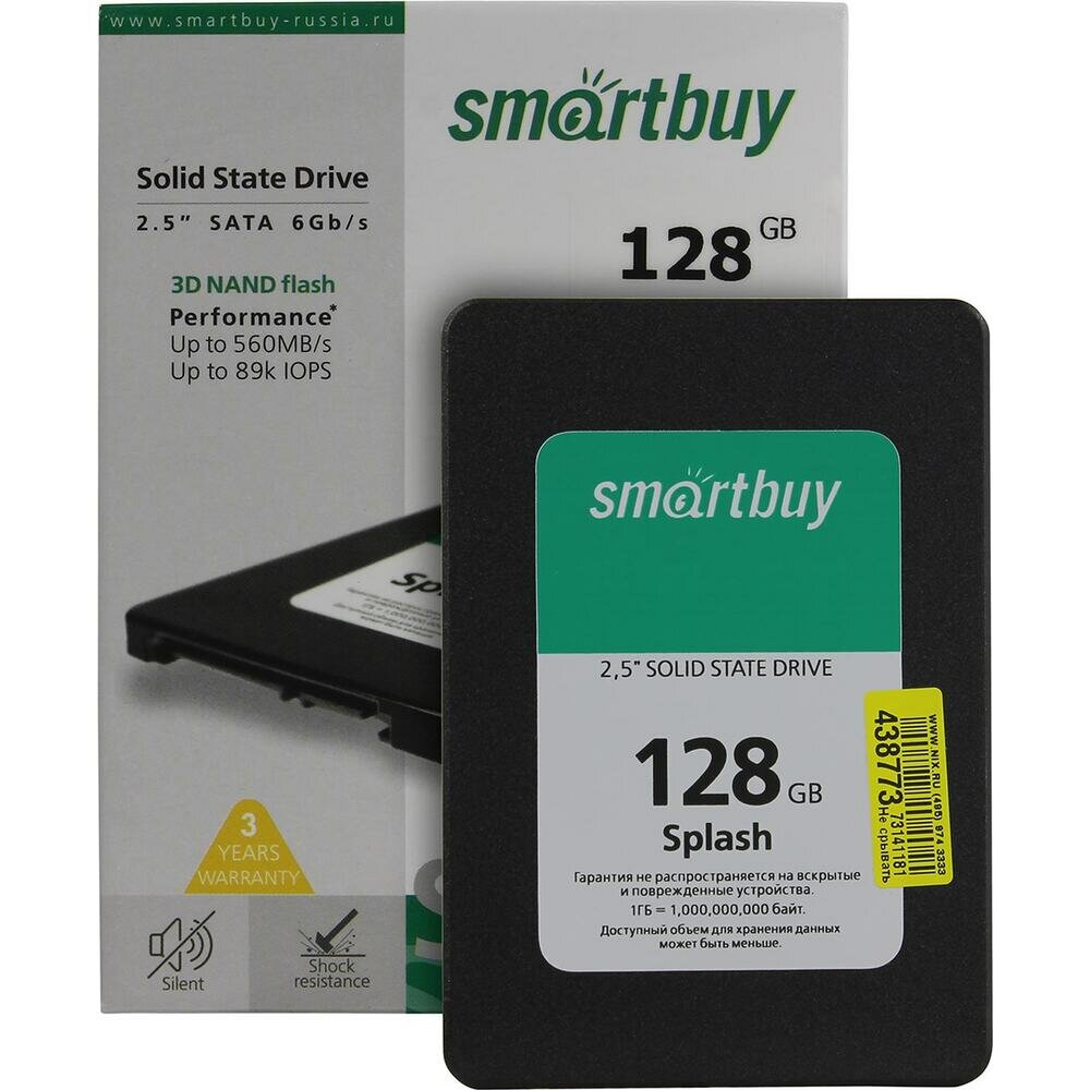 Купить Твердотельный накопитель SmartBuy Splash 128 ГБ SATA Splash (2019) (SBSSD-128GT-MX902-25S3)