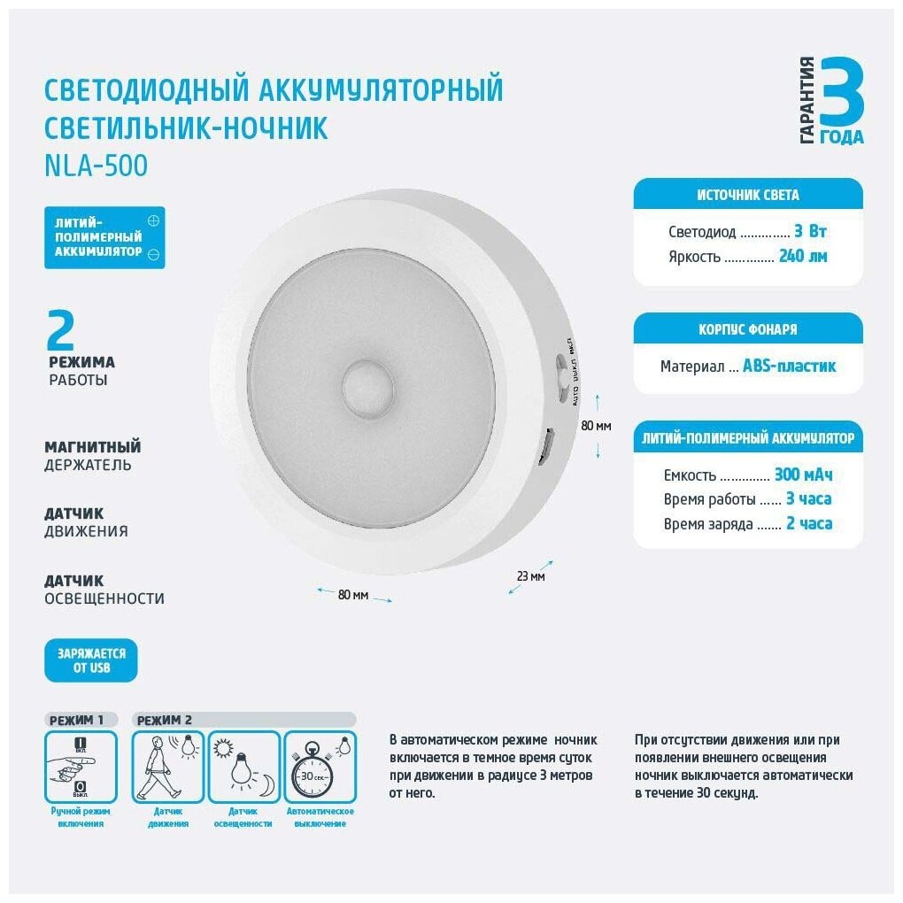 СохранитьФонарь-светильник NLA-500 LED аккумуляторный, 1 шт. в заказе интересное: