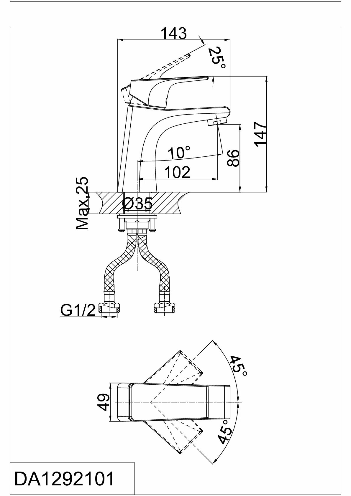 Смеситель D&K Hertz Rhein DA1292101 для раковины