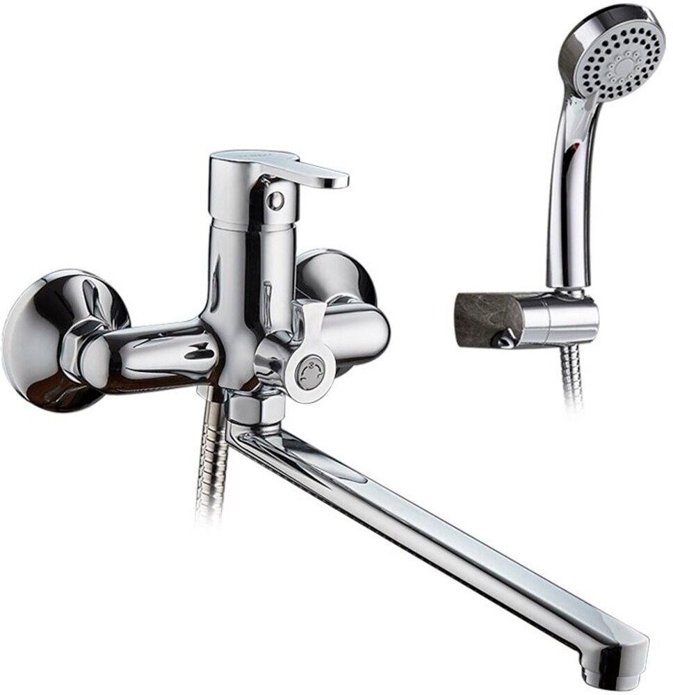 Однорычажный смеситель для ванны с душевой лейкой и длинным изливом Ledeme L2203