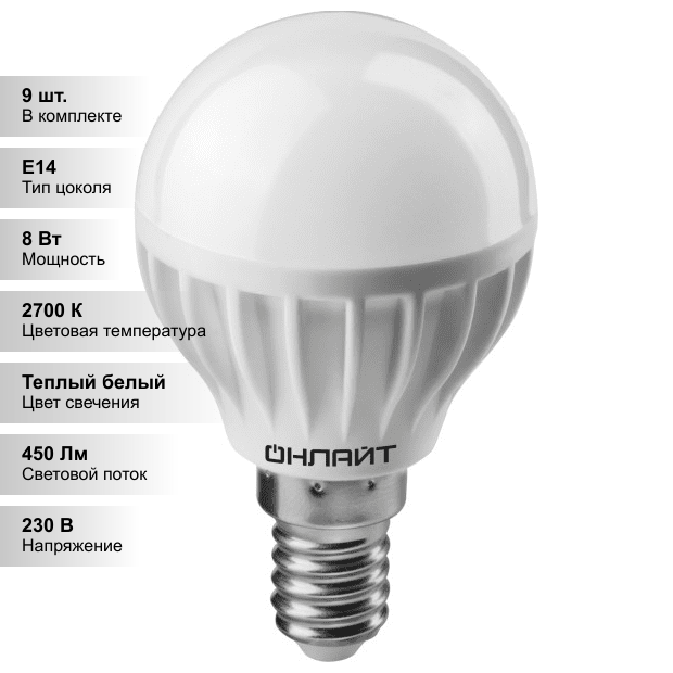 Купить (9 шт.) Светодиодная лампочка онлайт G45 8Вт 230В 2700K E14