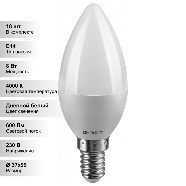 Купить (18 шт.) Светодиодная лампочка онлайт C37 8Вт 230В 4000K E14