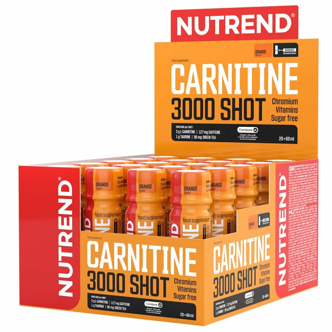 Купить L-Карнитин жидкий NUTREND CARNITINE 3000 SHOT 20 х 60 мл, Апельсин
