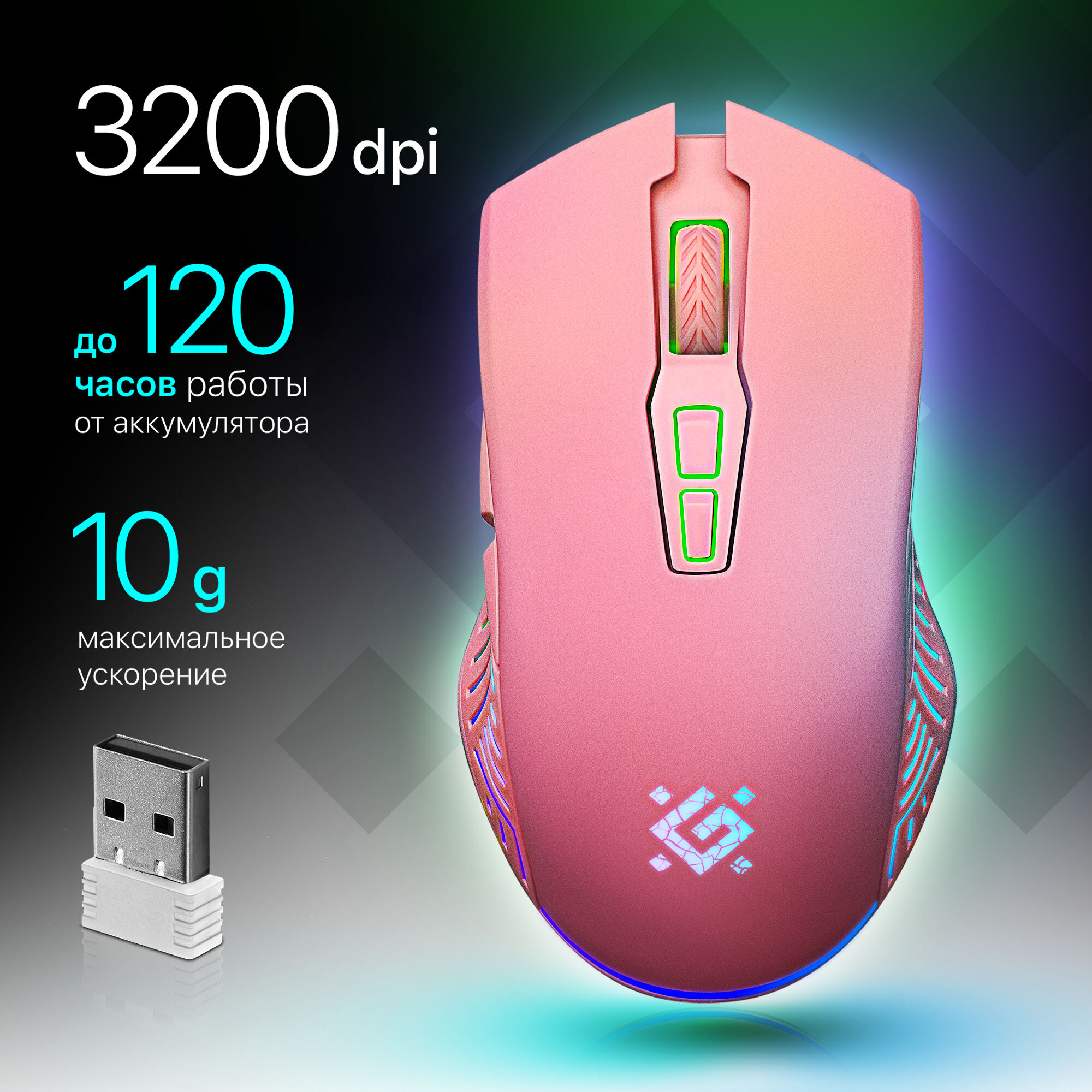 Купить Мышь DEFENDER игровая беспроводная Pandora GM-502 розов,7кнопок,3200dpi, LED,500мАч бесшумная (52501