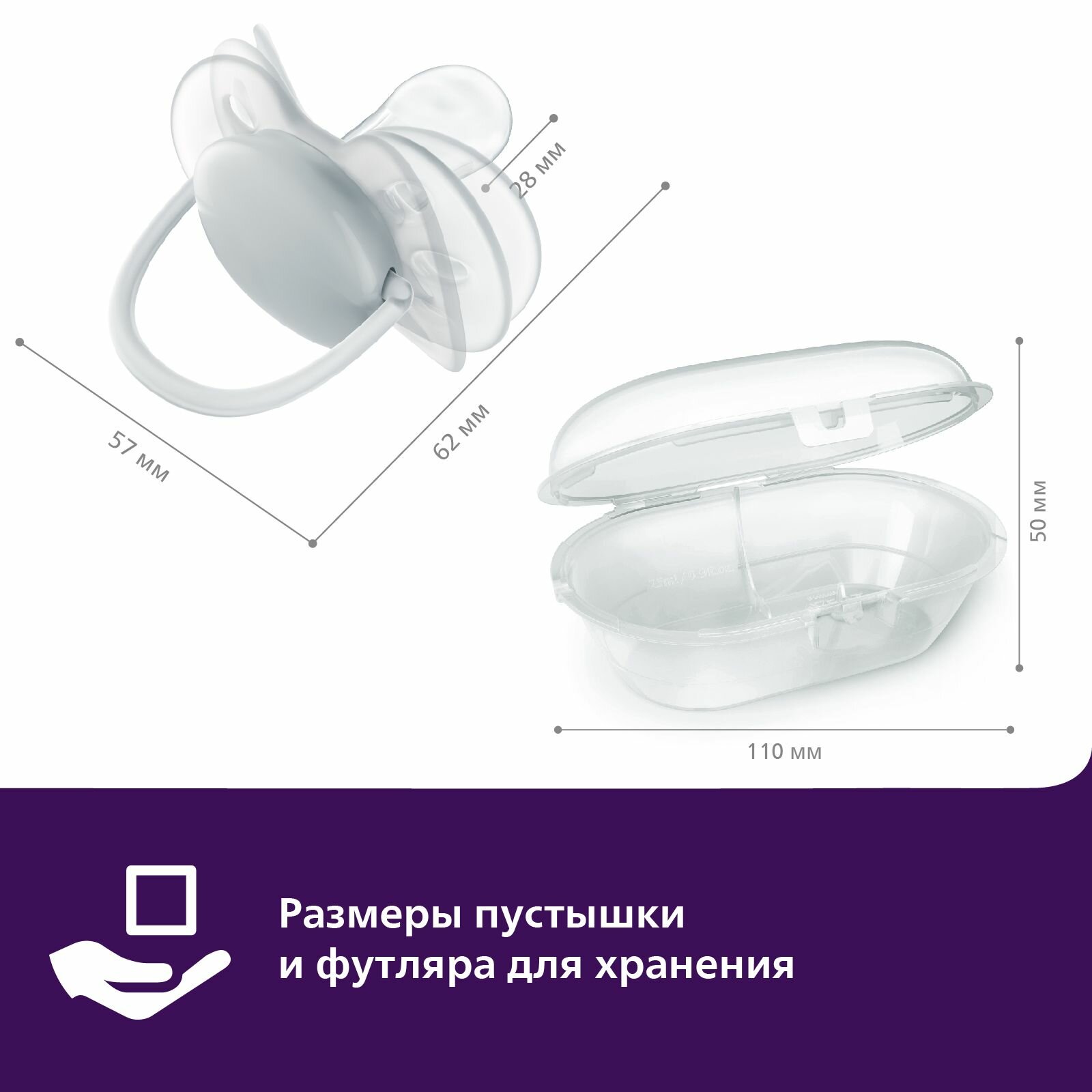 | Комплектация | пустышка Avent Ultra Soft 2 шт., контейнер для стерилизации |