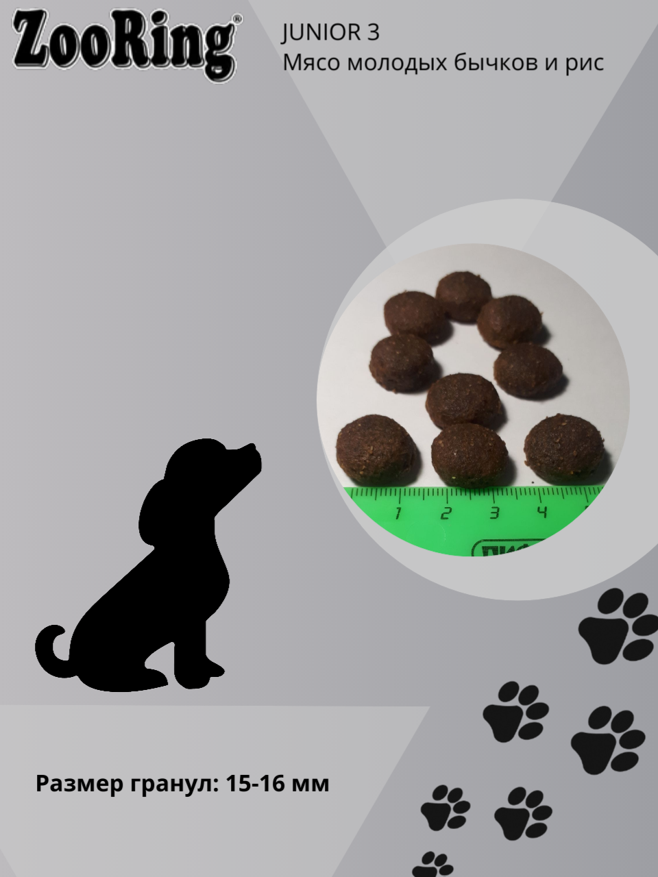 Купить Сухой корм ZooRing Puppy&Junior 3 26/15 мясо молодых бычков и рис для щенков, 2кг