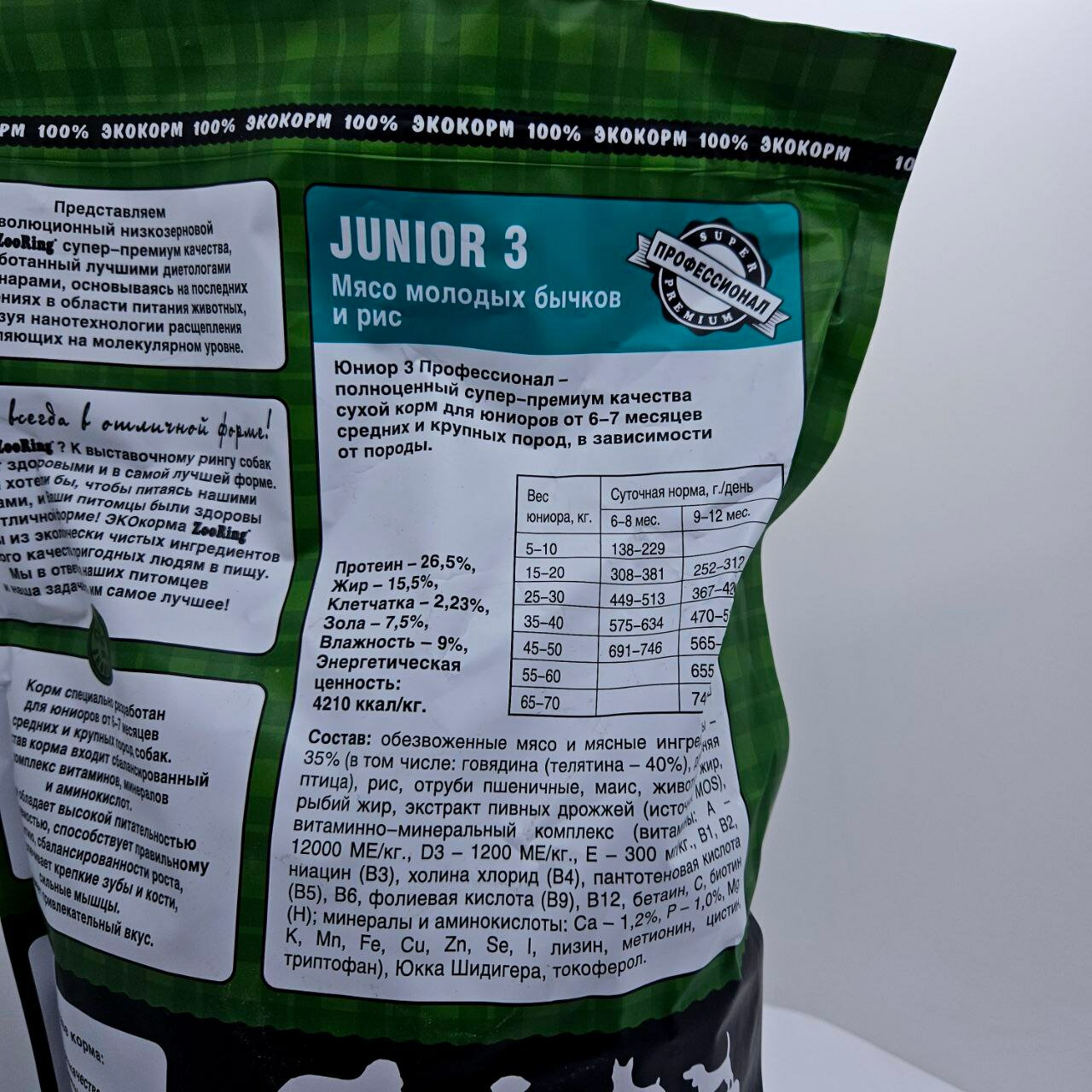 Сухой корм для собак ZOORING JUNIOR 3 мясо молодых бычков, 1уп. х 2 кг.