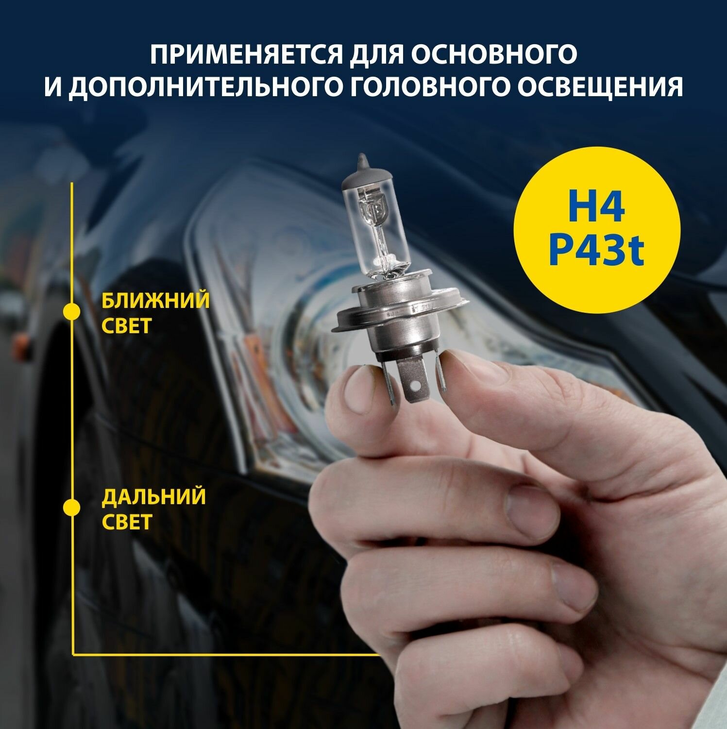 Купить Лампа галогеновая головного света H4 P43t 12V 60/55W картон 1шт