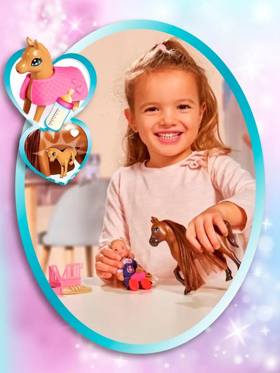 | Комплектация | кукла, лошадка, жеребенок, попона, бутылочка, загончик |