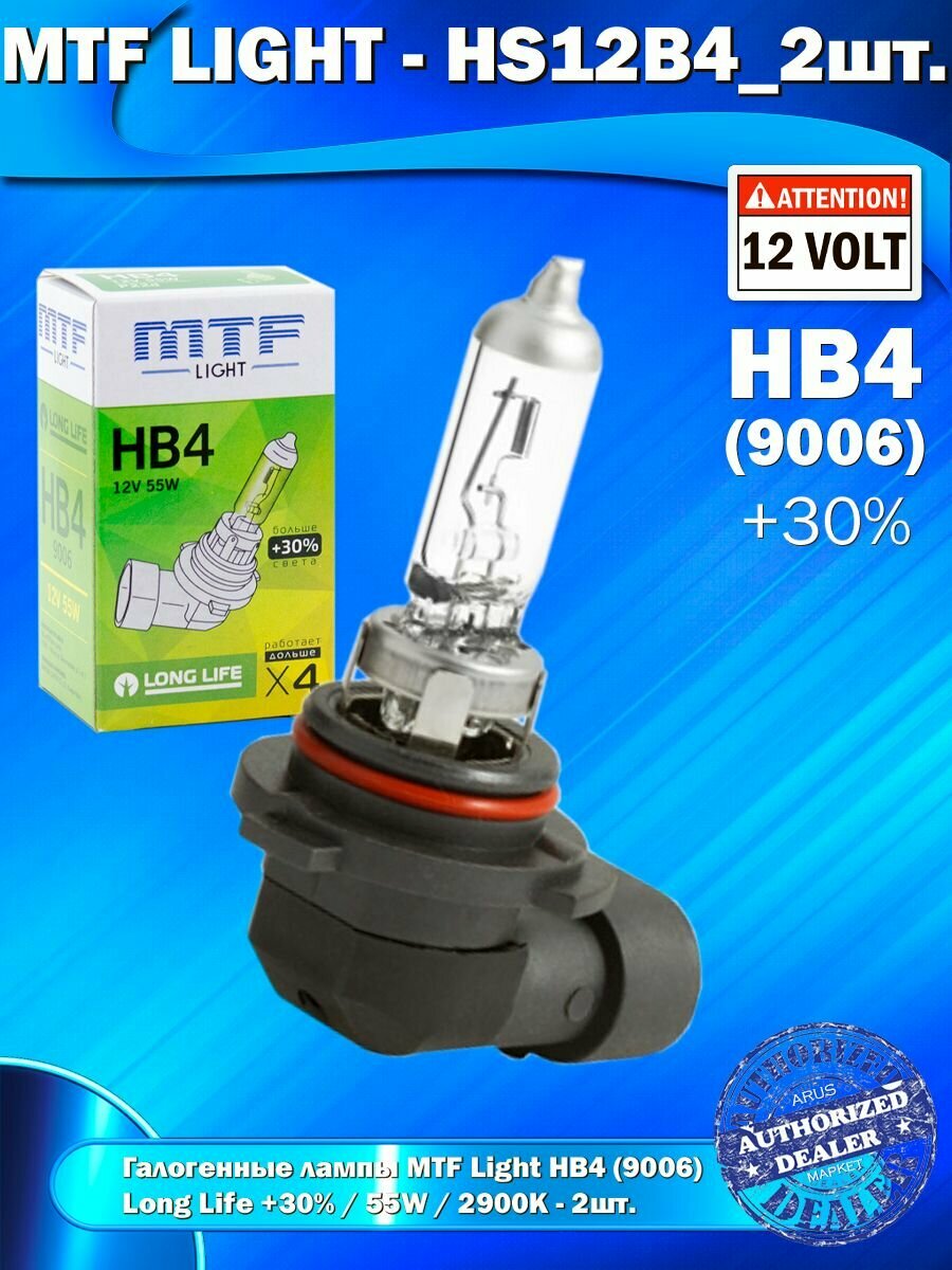 Купить Галогенные лампы MTF Light HB4(9006), 12V, 55W, +30% LONG LIFE x4, 2шт.