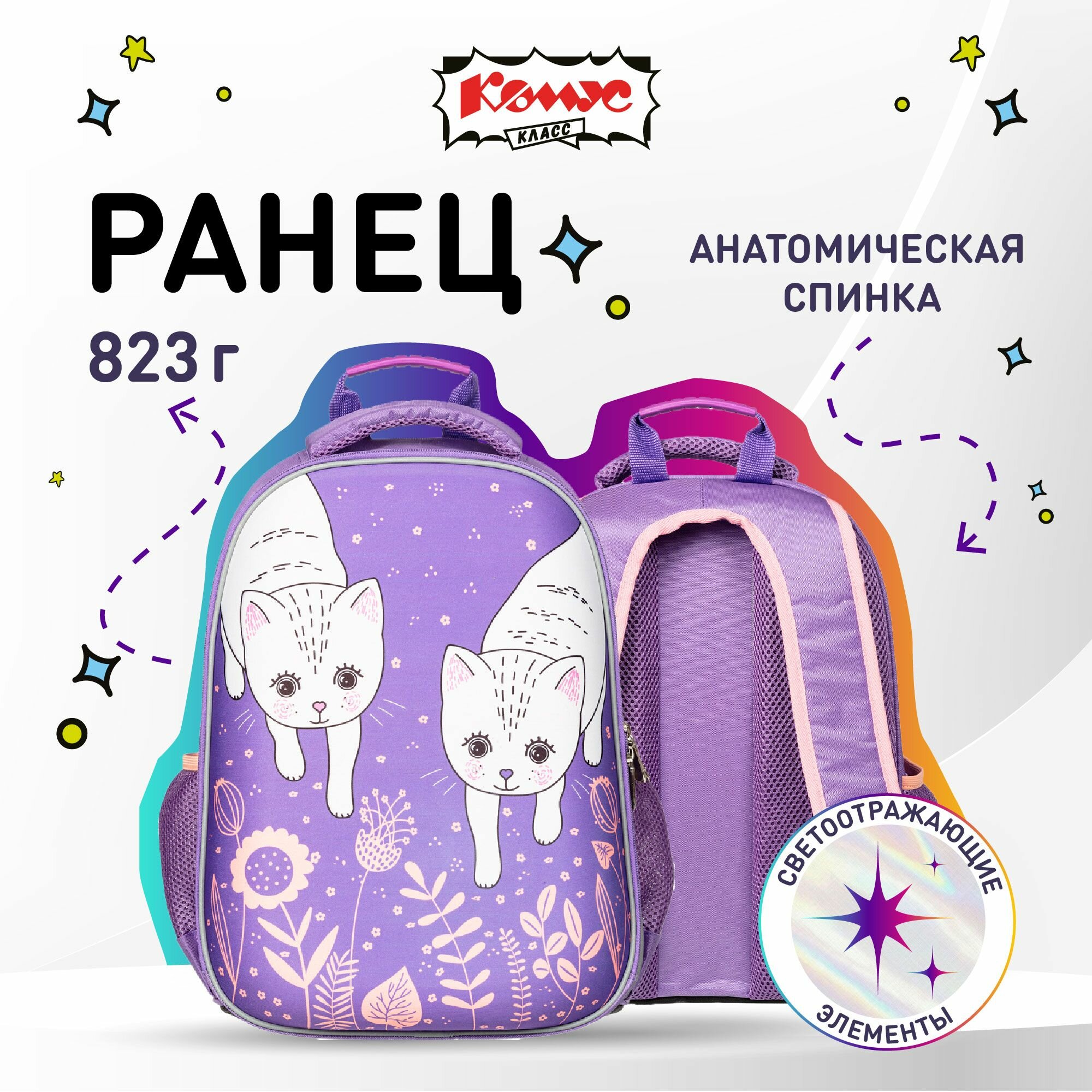 Ранец школьный Комус Класс Коты, анатомический, 2 отделения, 4 кармана