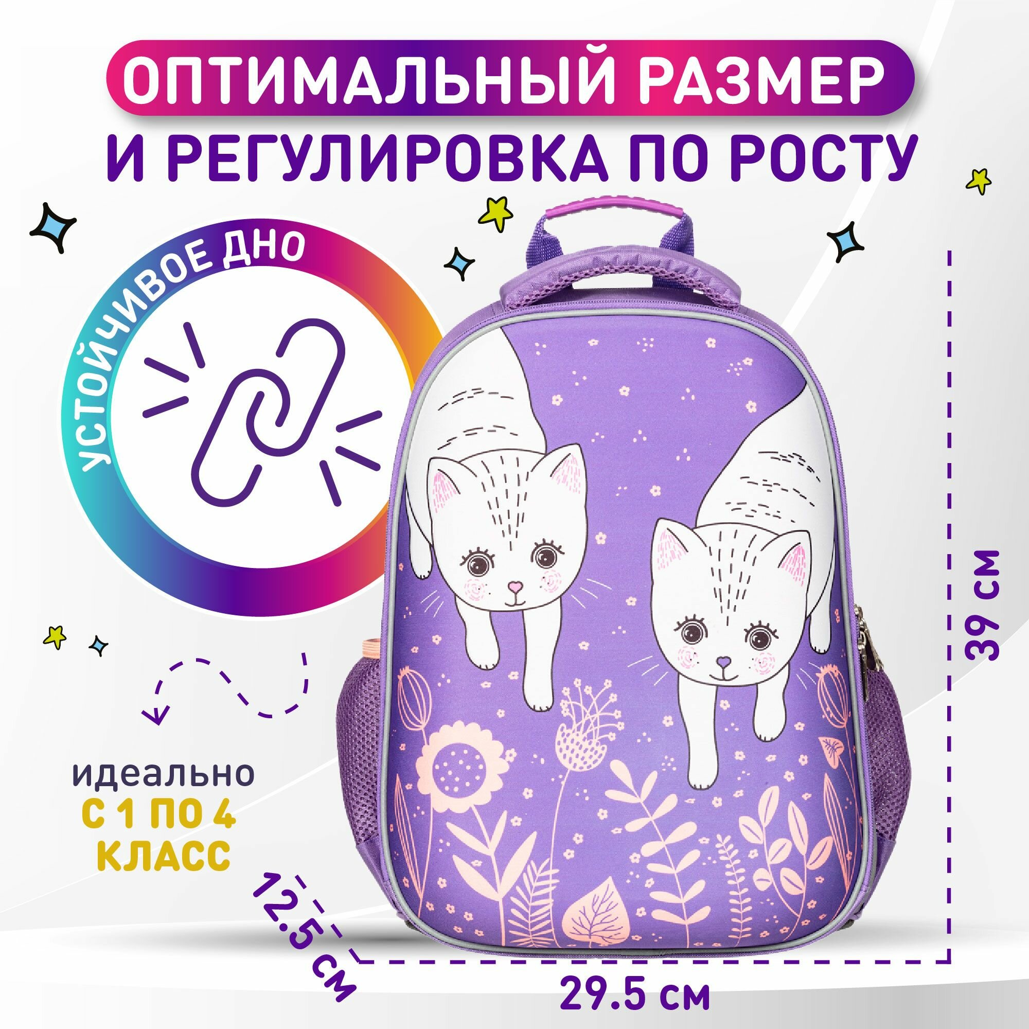 Купить Рюкзак школьный Комус Light Котики, портфель анатомический для девочки, 2 отделения, 2 кармана