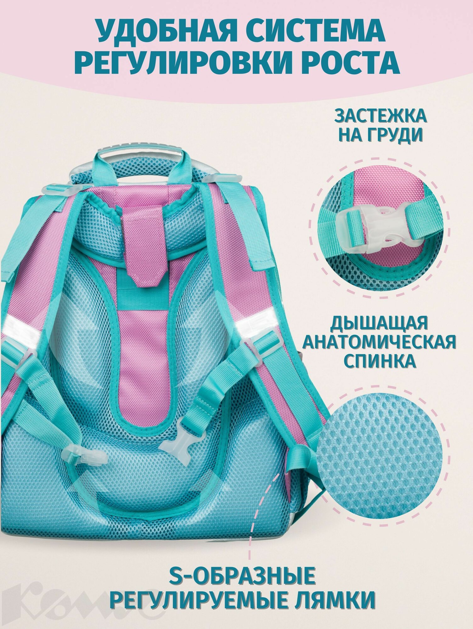 Рюкзак школьный Комус Basic Единорог, портфель анатомический для девочки, 2 отделения, 4 кармана