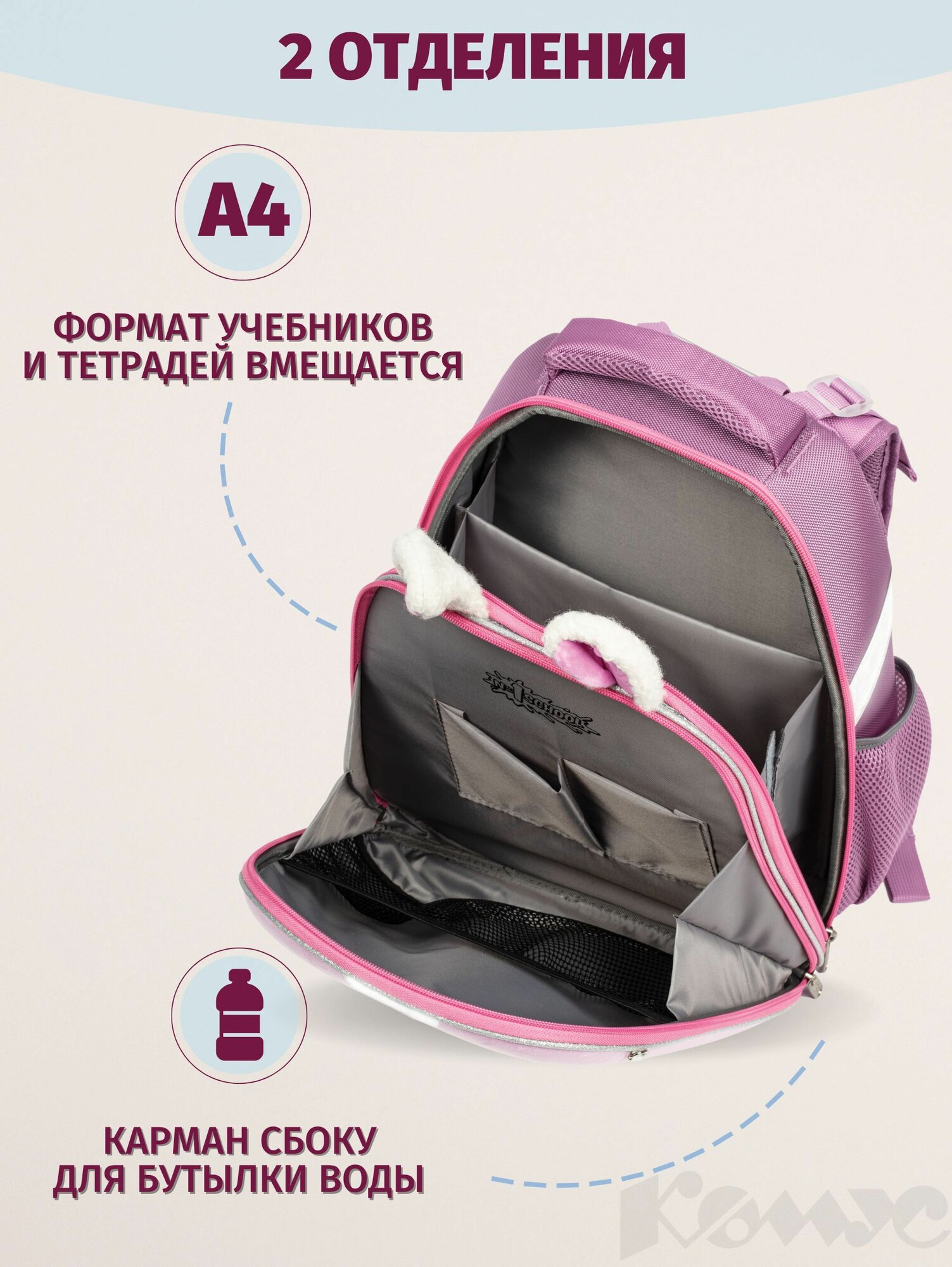 Рюкзак школьный Комус Класс Straight Lovely, портфель анатомический для девочки, 2 отделения, 5 карманов
