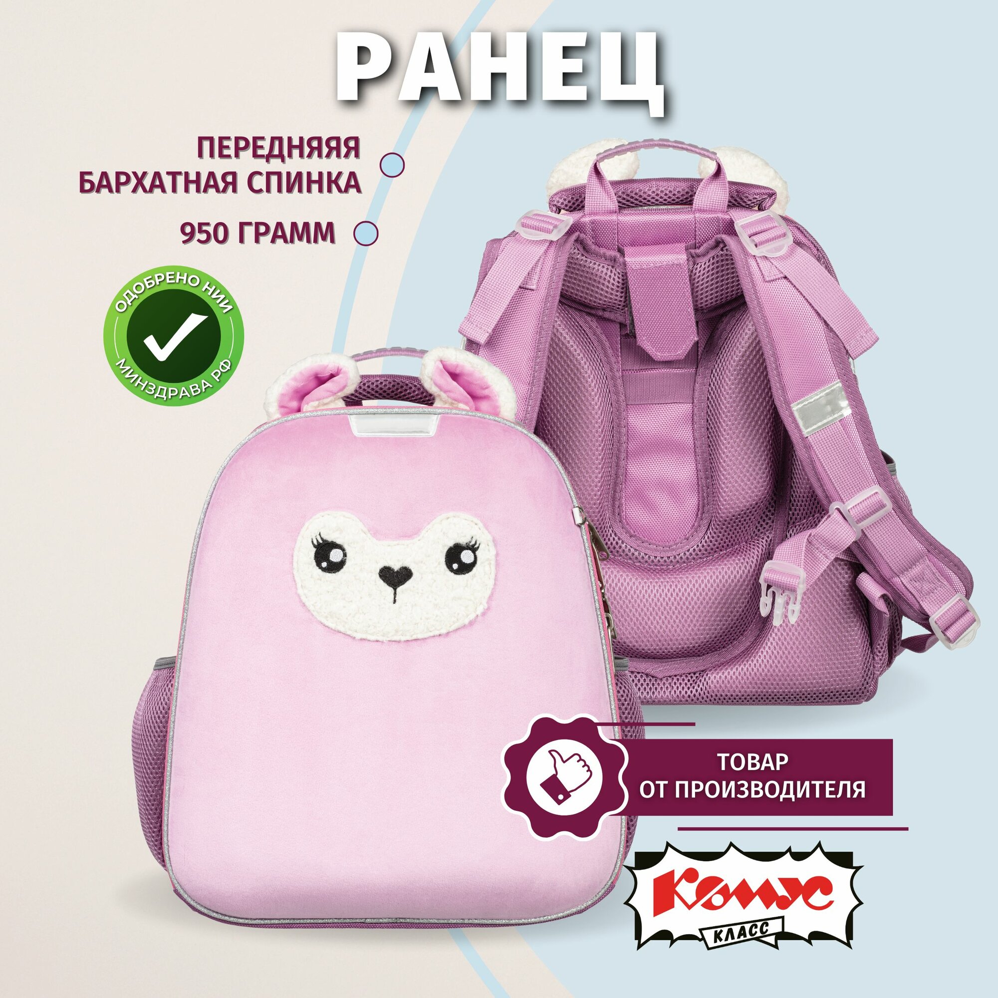 Ранец школьный Комус Класс Мордочки Зайчик, анатомический, 2 отделения, 4 кармана