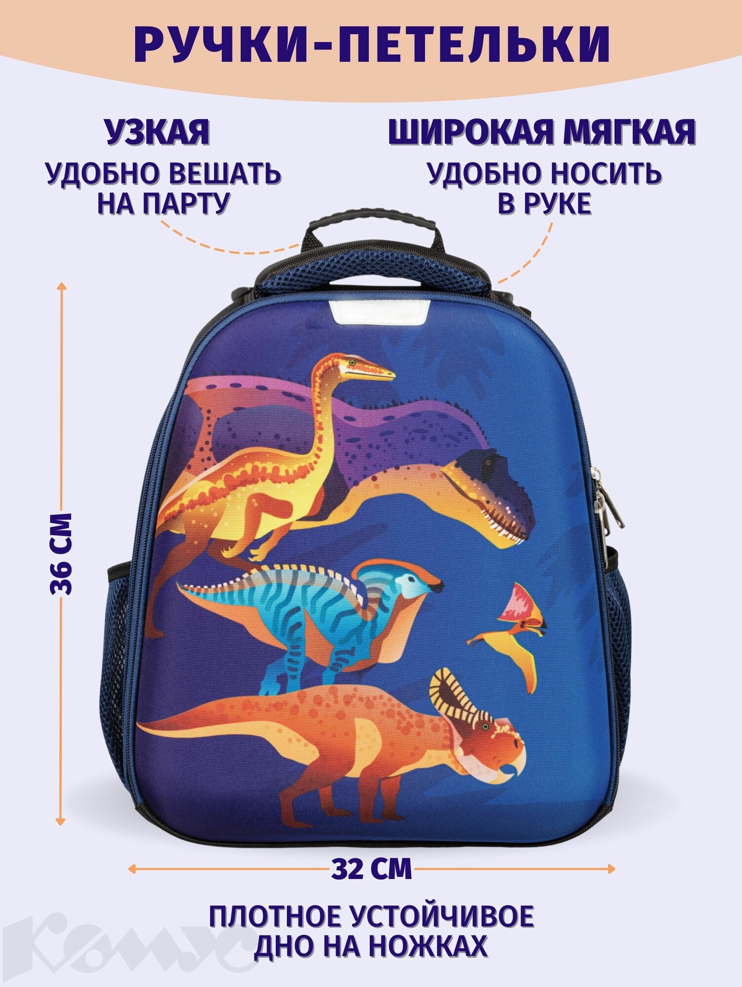 Ранец школьный Комус Класс Basic Динозавры, анатомический, 2 отделения, 2 кармана