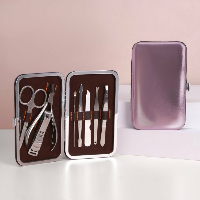 Набор маникюрный «Metallic», 8 предметов, в футляре, цвет розовый