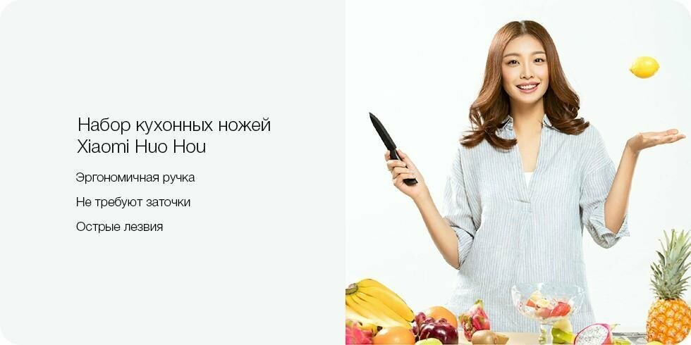 Набор кухонных ножей Xiaomi Huohou Ceramic HU0010, 4 штуки, керамика, черный интересное: