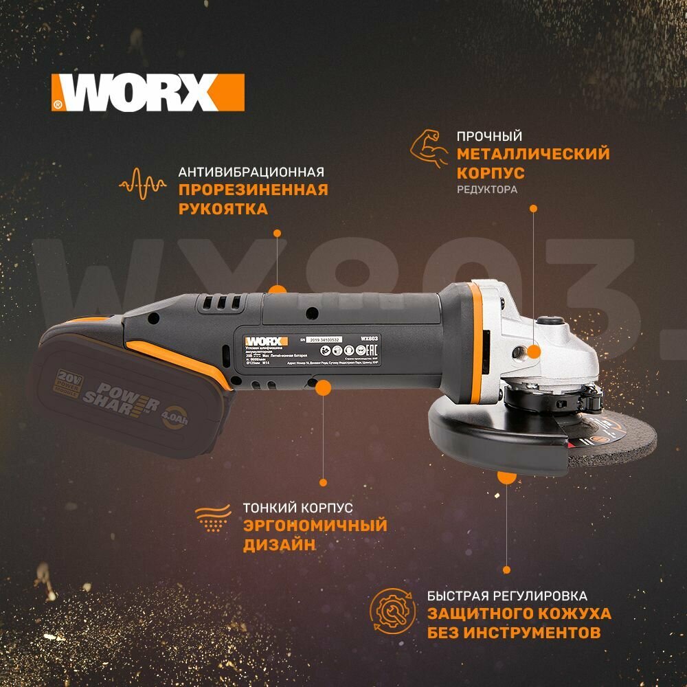 Угловая шлифмашина акк. WORX WX803.9 без АКБ и ЗУ