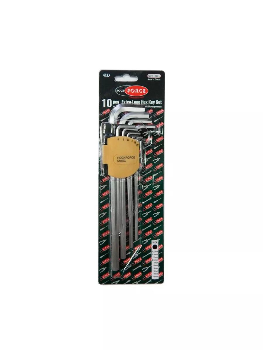 Набор ключей ROCK FORCE шестигранных экстрадлинных 1.27-10мм 10 предметов