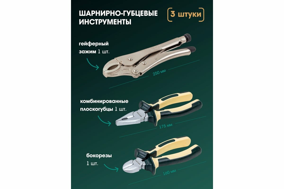 | Шарнирно-губцевый инструмент подробно | пассатижи 175 мм, кусачки 7" |