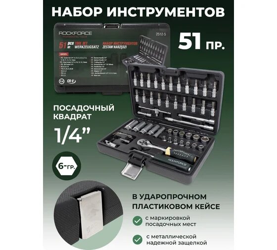 Rockforce Набор инструмента 1/4"DR с 6-гранными головками 51пр. RF-2512-5(11867)