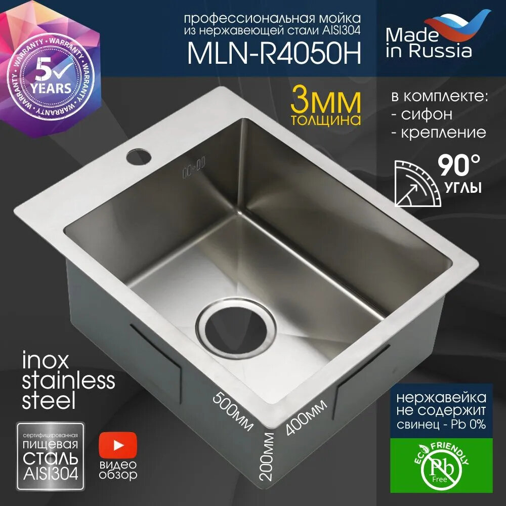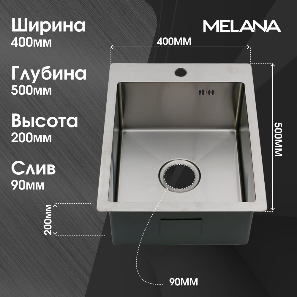 Мойка для кухни Melana ProfLine 400х500х200 мм врезная прямоугольная с сифоном сталь (R4050H)