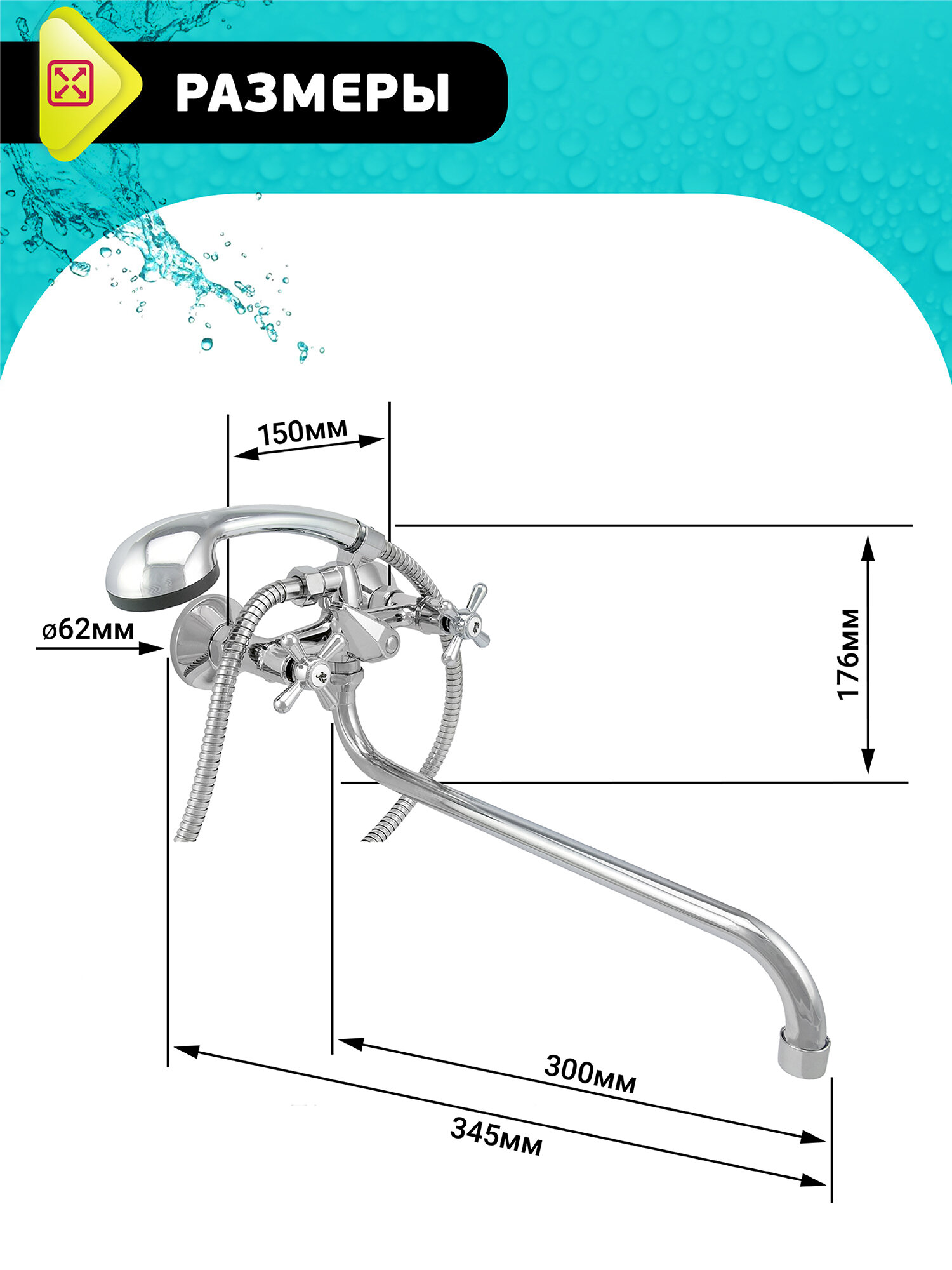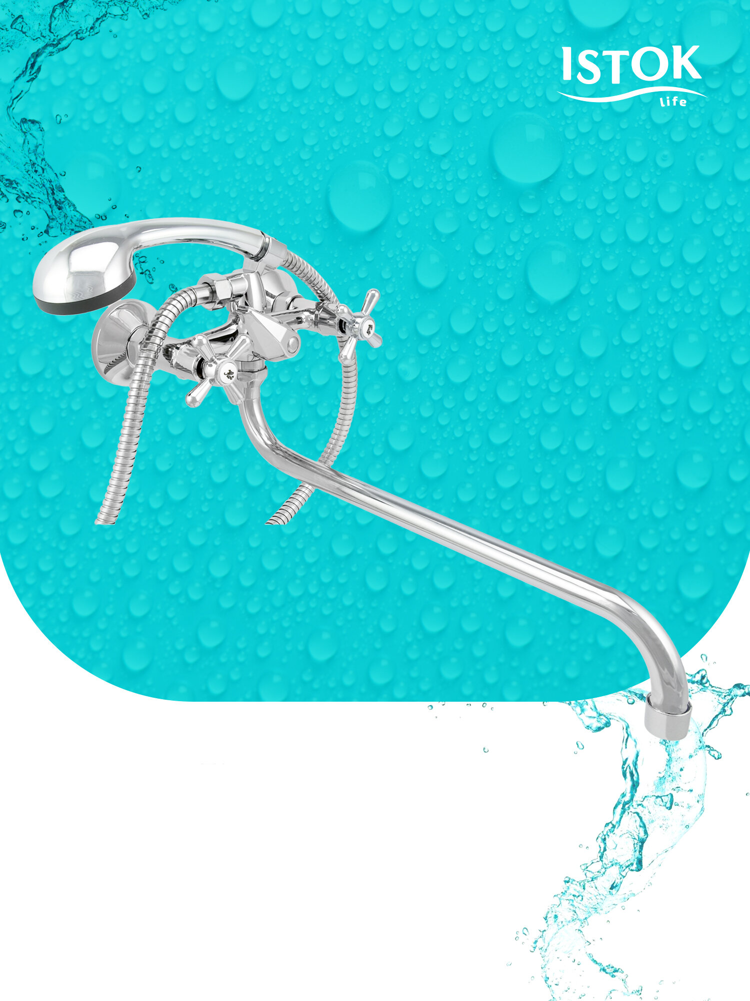 Смеситель ванно-душевой двуручный Istok life с длинным S-изливом, керам. Кран букса