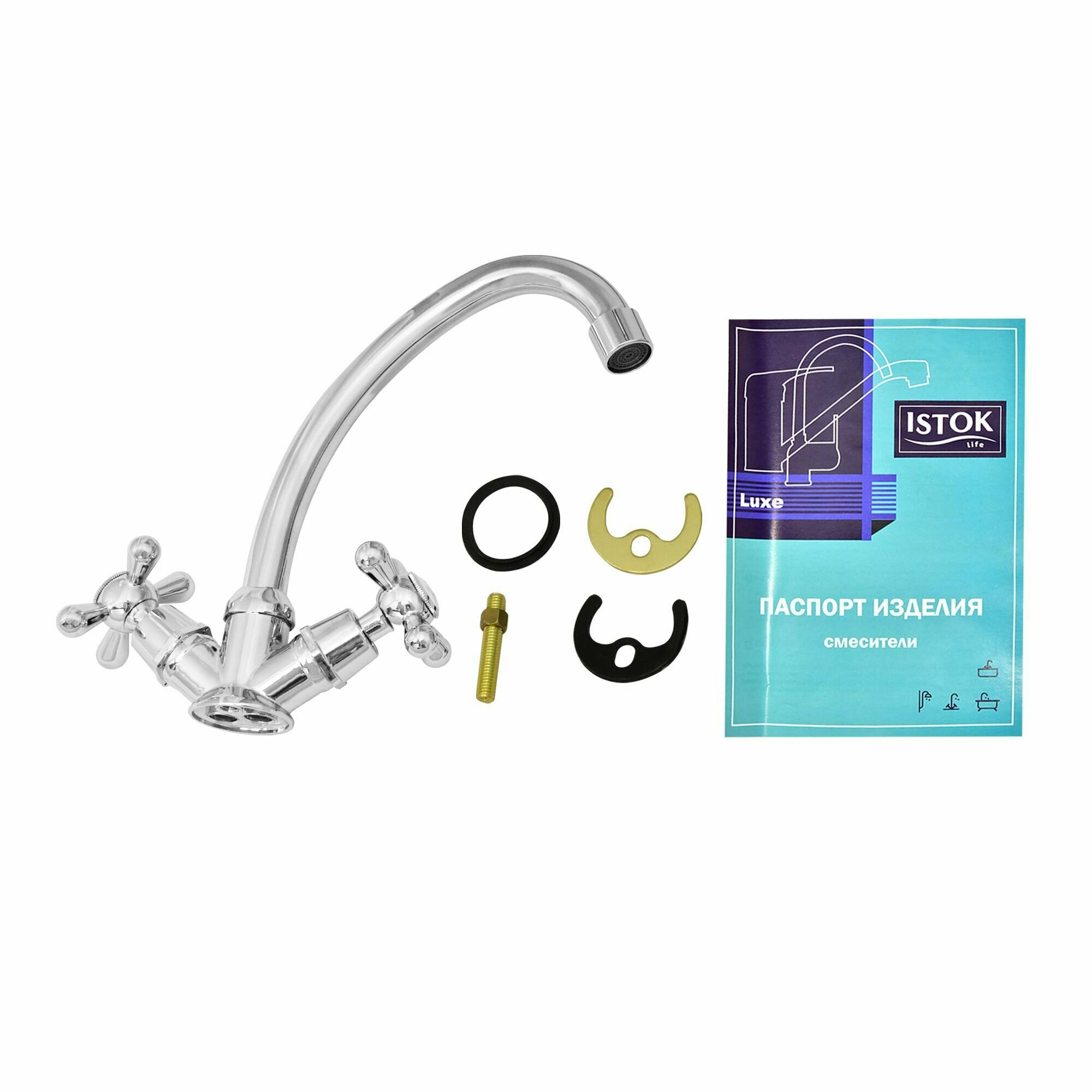 Смеситель для мойки двуручный Istok life с поворотным изливом, керам. Кран букса, шпилька