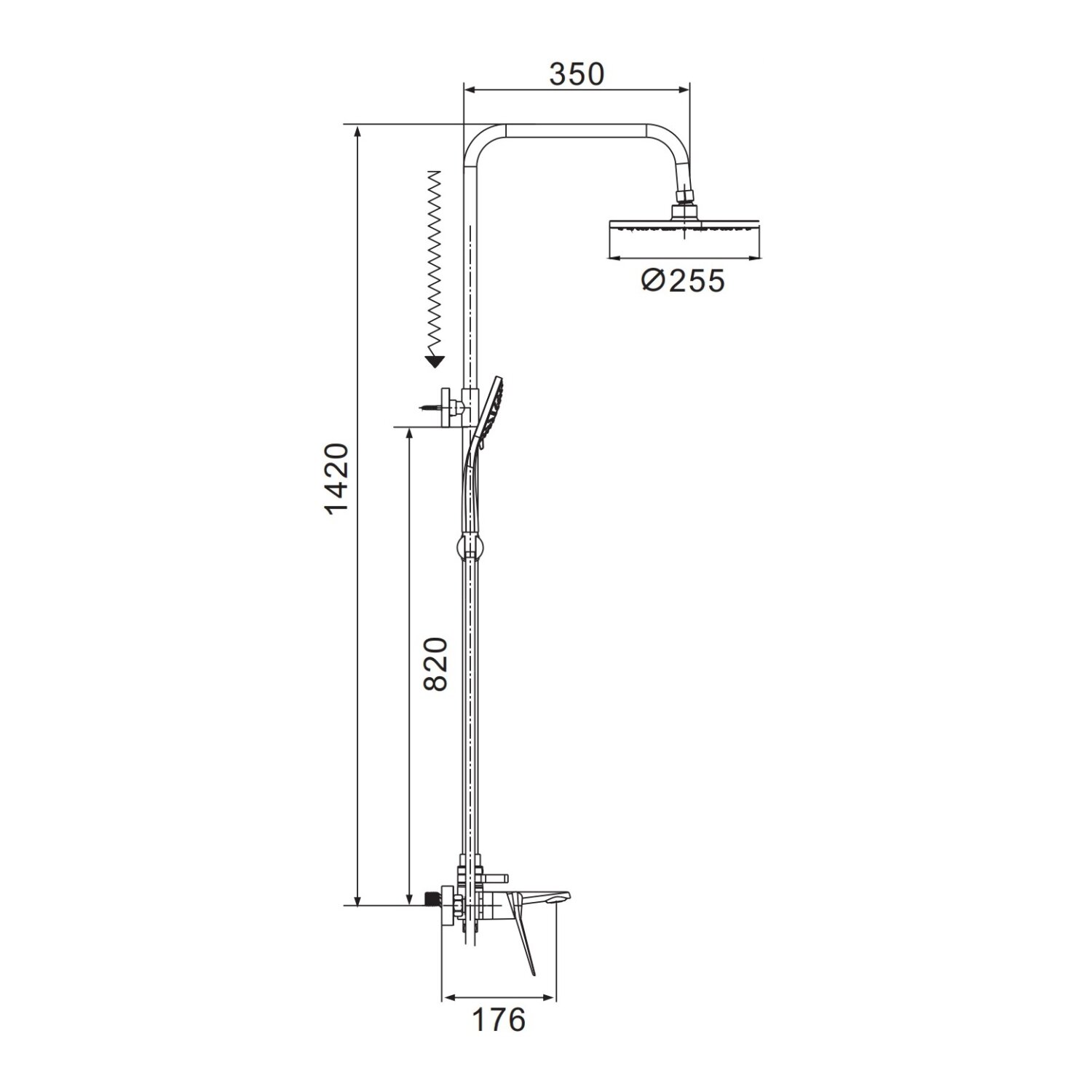 | Комплектация | душевая лейка / шланг для душа / верхний душ / душевая стойка / Смеситель |