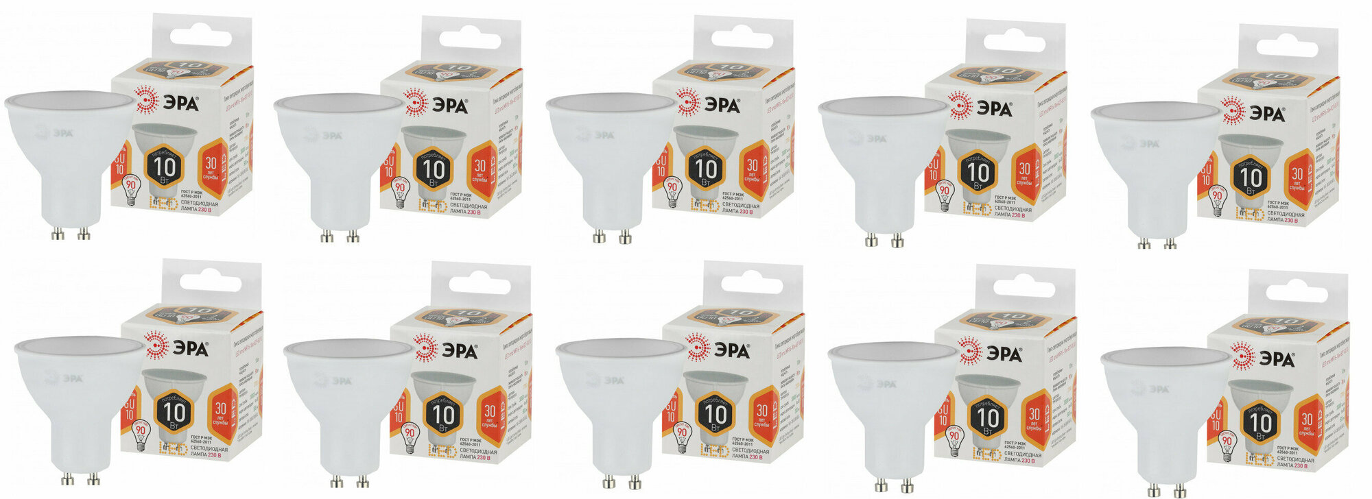 Лампочка светодиодная ЭРА (набор 10 штук) STD LED MR16-6W-840-GU5.3 GU5.3 6 ВТ софит нейтральный белый СВEТ