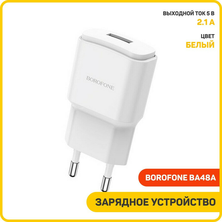 Сетевое зарядное устройство (СЗУ) Borofone BA48A (USB) 2.1 А, белый