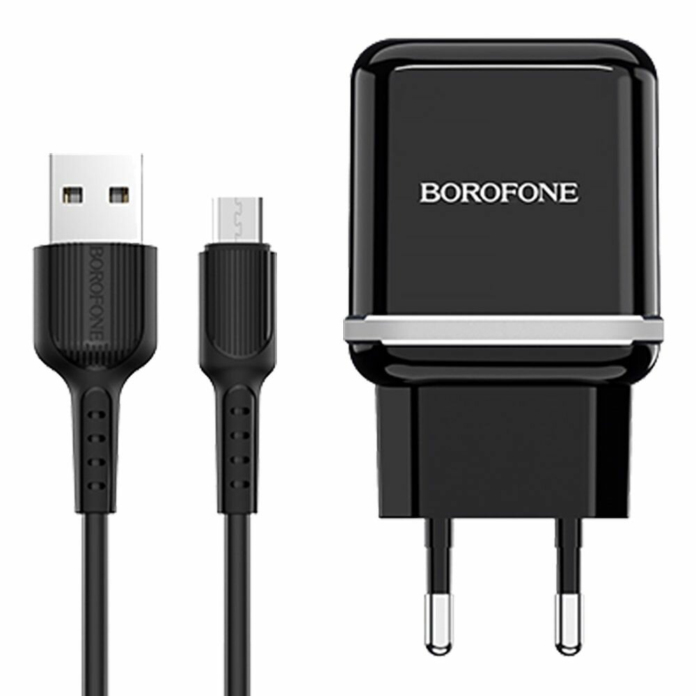 Сетевое зарядное устройство USB Borofone BA25A (2.4A/кабель MicroUSB) <черный>
