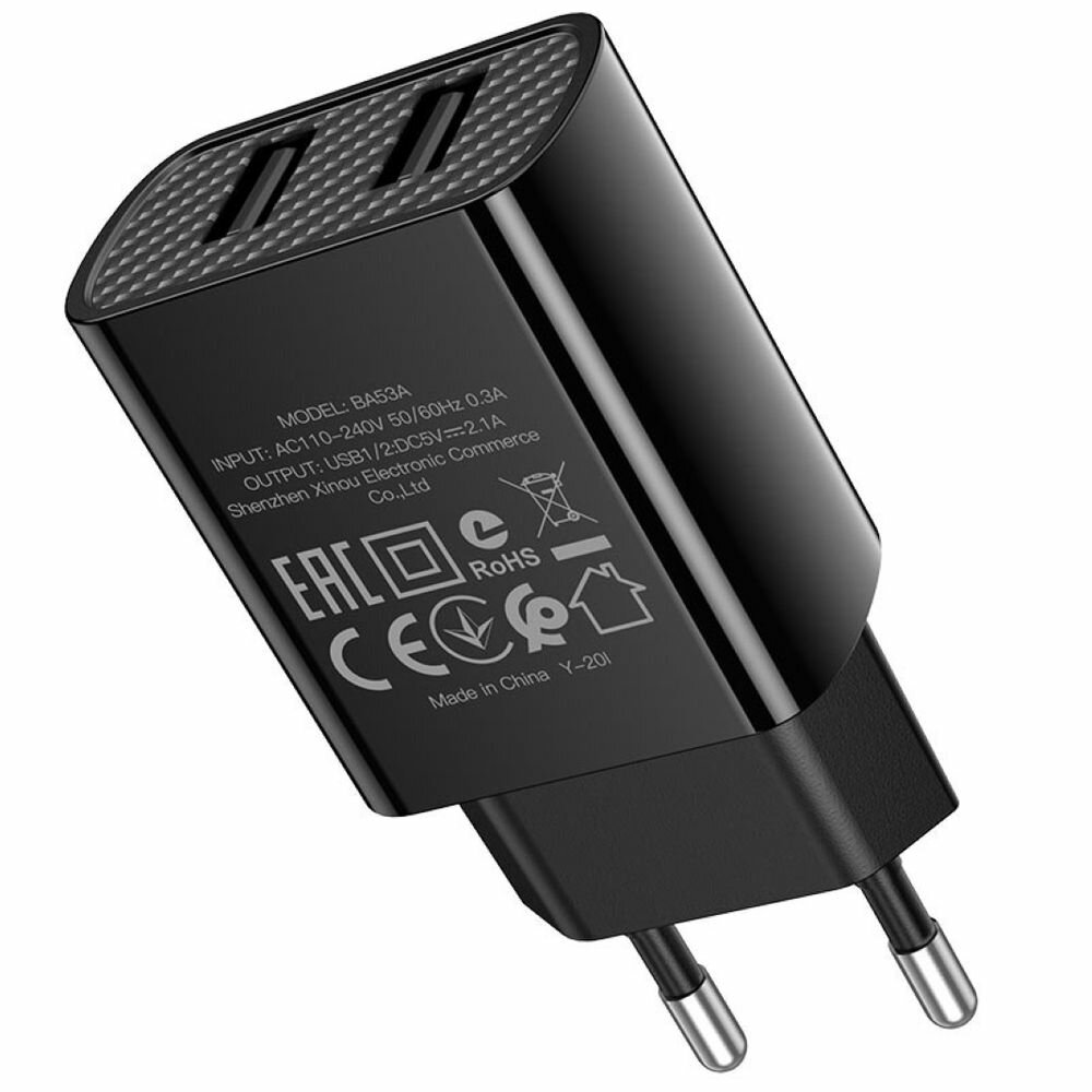 Сетевое зарядное устройство BA53A, 2xUSB, 2.1 А, чёрное