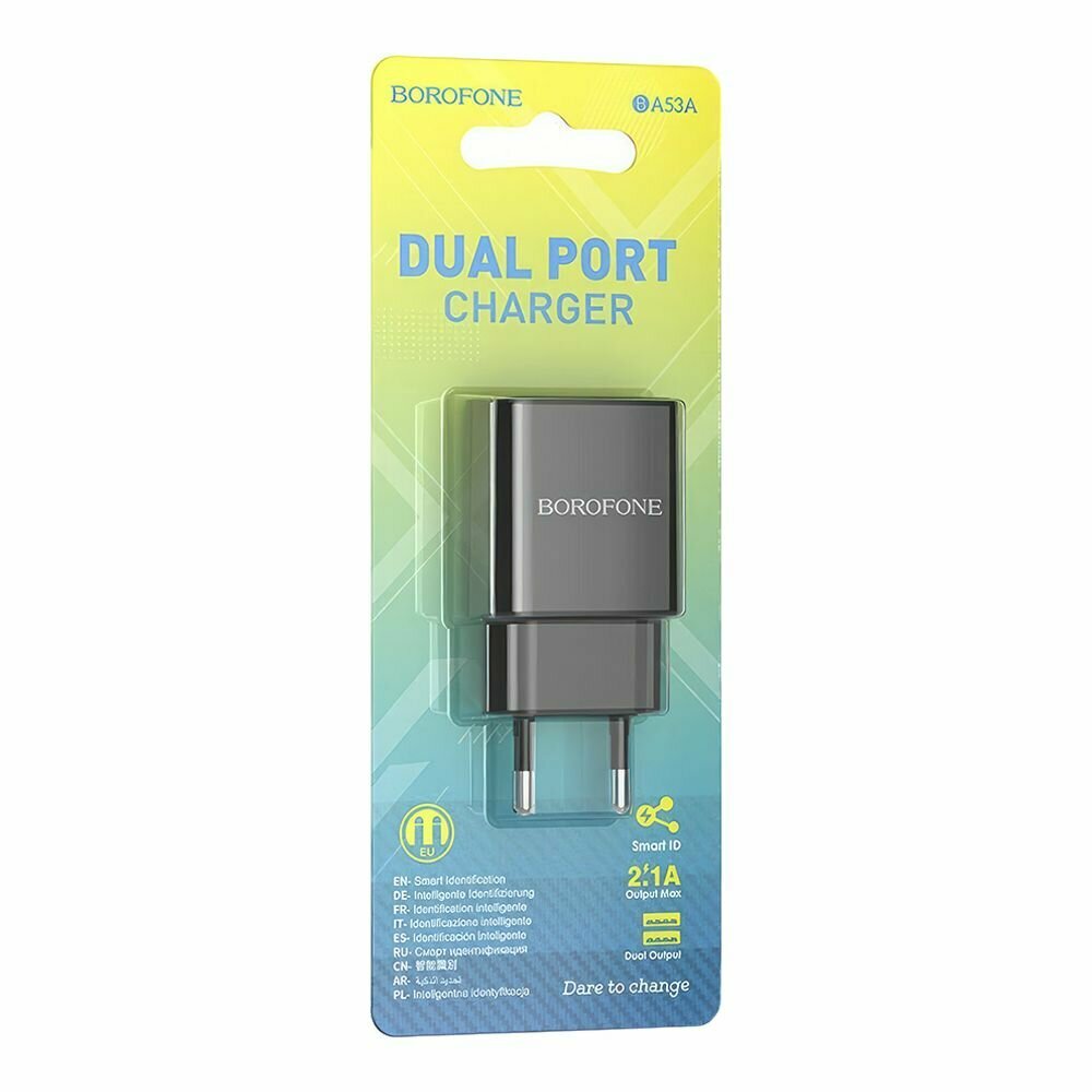 Сетевое зарядное устройство Borofone BA53A, 2xUSB, 2.1 А, кабель microUSB, чёрное