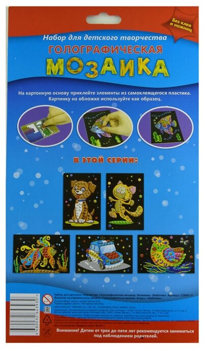 Мозаика голографическая "Бабочка", А6 интересное: