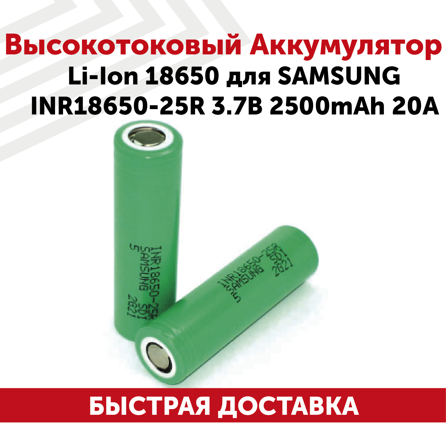Высокотоковый аккумулятор Samsung INR18650-25R перезаряжаемая для электронных устройств, тип 18650, 3.7В, 2500мАч, 20A, Li-Ion, 1 шт