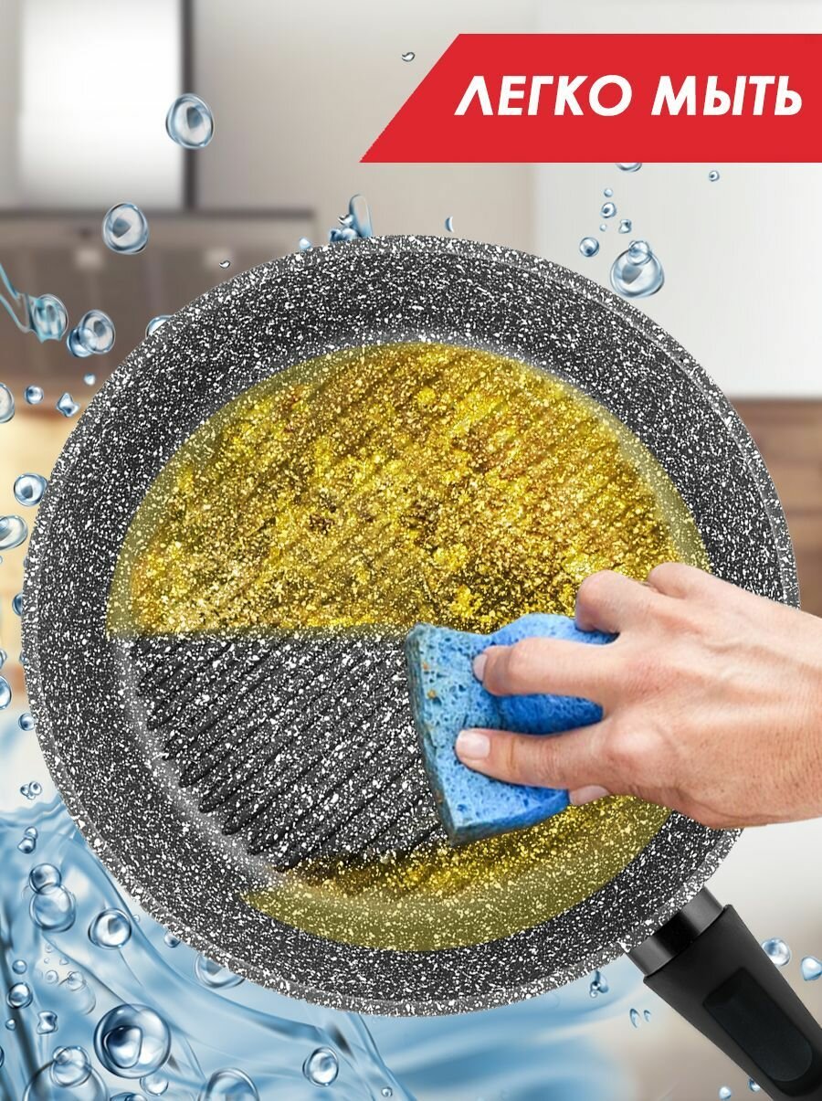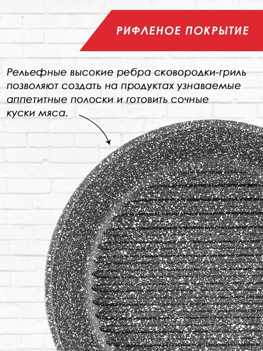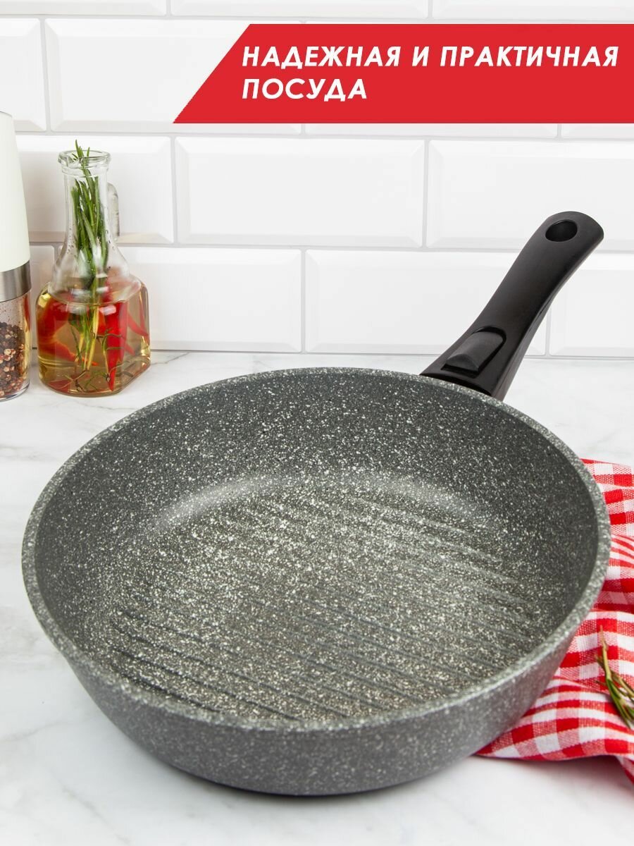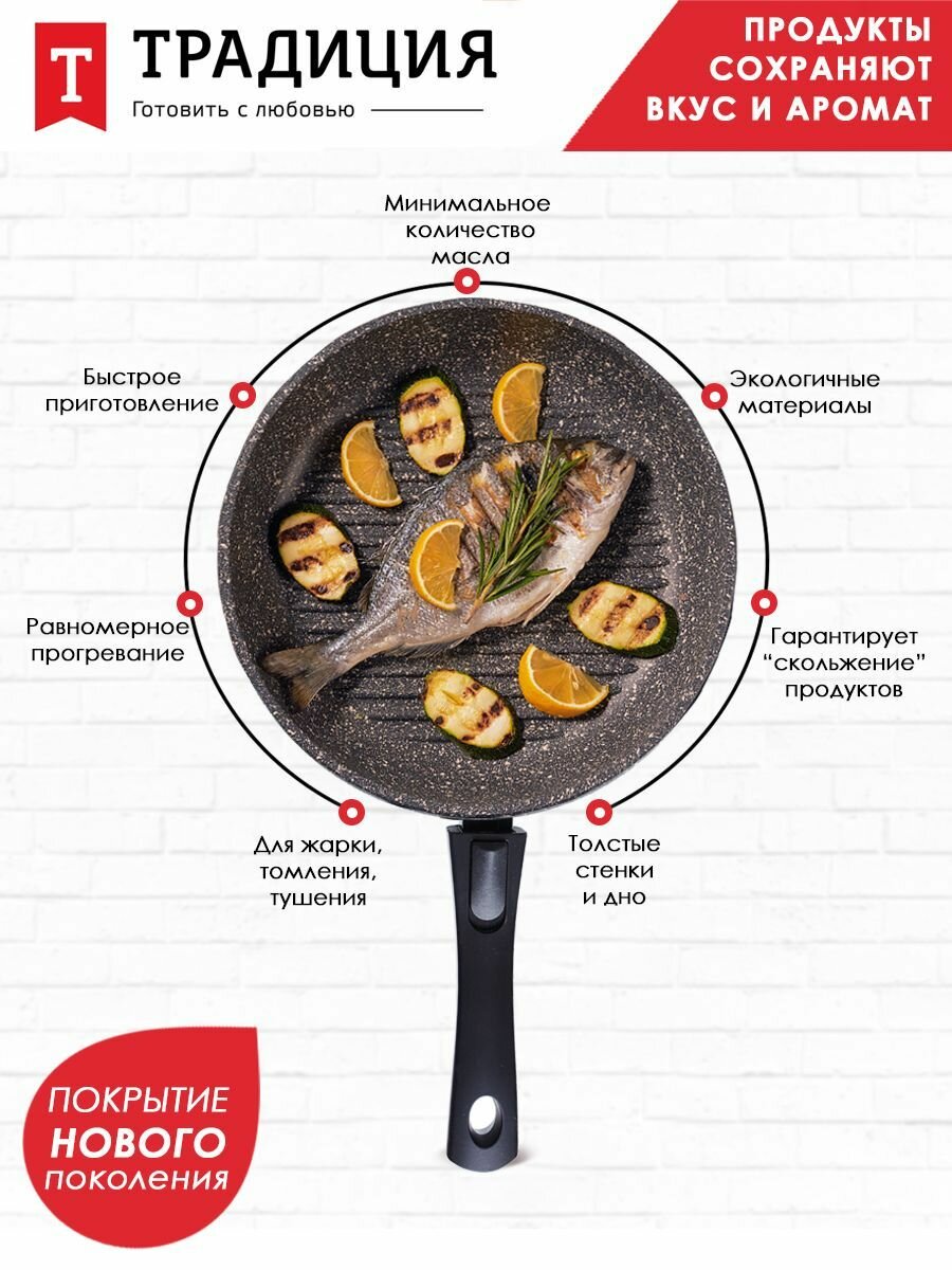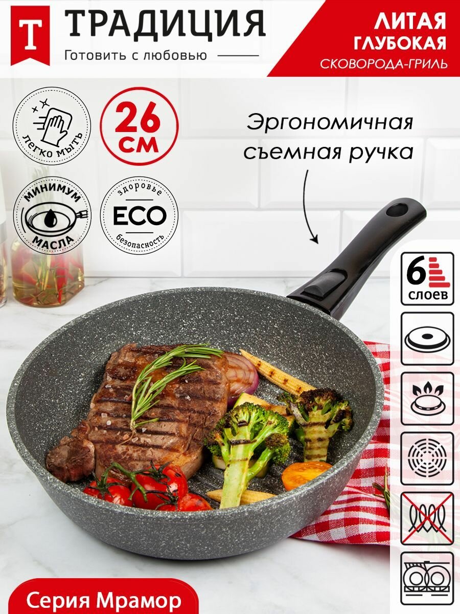 Сковорода-гриль антипригарная литая 26см со съемной ручкой Мрамор ТМ Традиция готовить с любовью интересное: