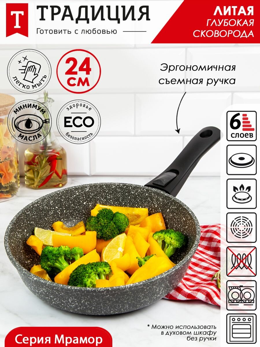 СохранитьТрадиция ТМ2245 а/пр литая 24см съемн/руч Мрамор интересное: