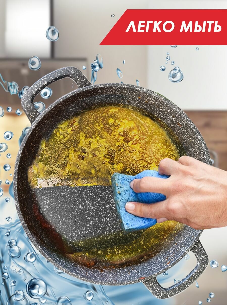 Купить Жаровня антипригарная литая с крышкой 26см Мрамор ТМ Традиция готовить с любовью