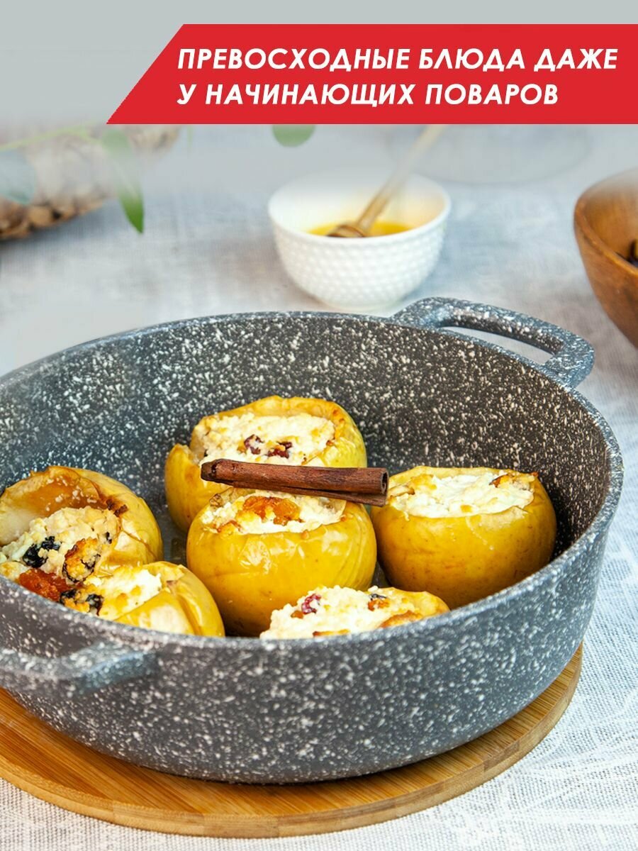 Жаровня антипригарная с крышкой 26см Мрамор ТМ Традиция готовить с любовью