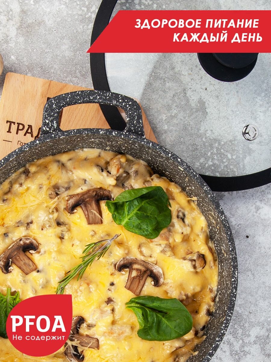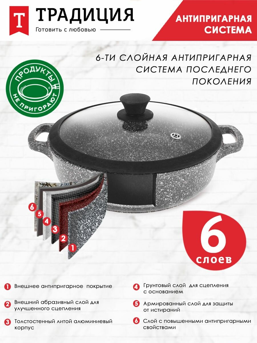 Жаровня с антипригарная литая 24см со стеклянной крышкой Гранит ТМ Традиция готовить с любовью