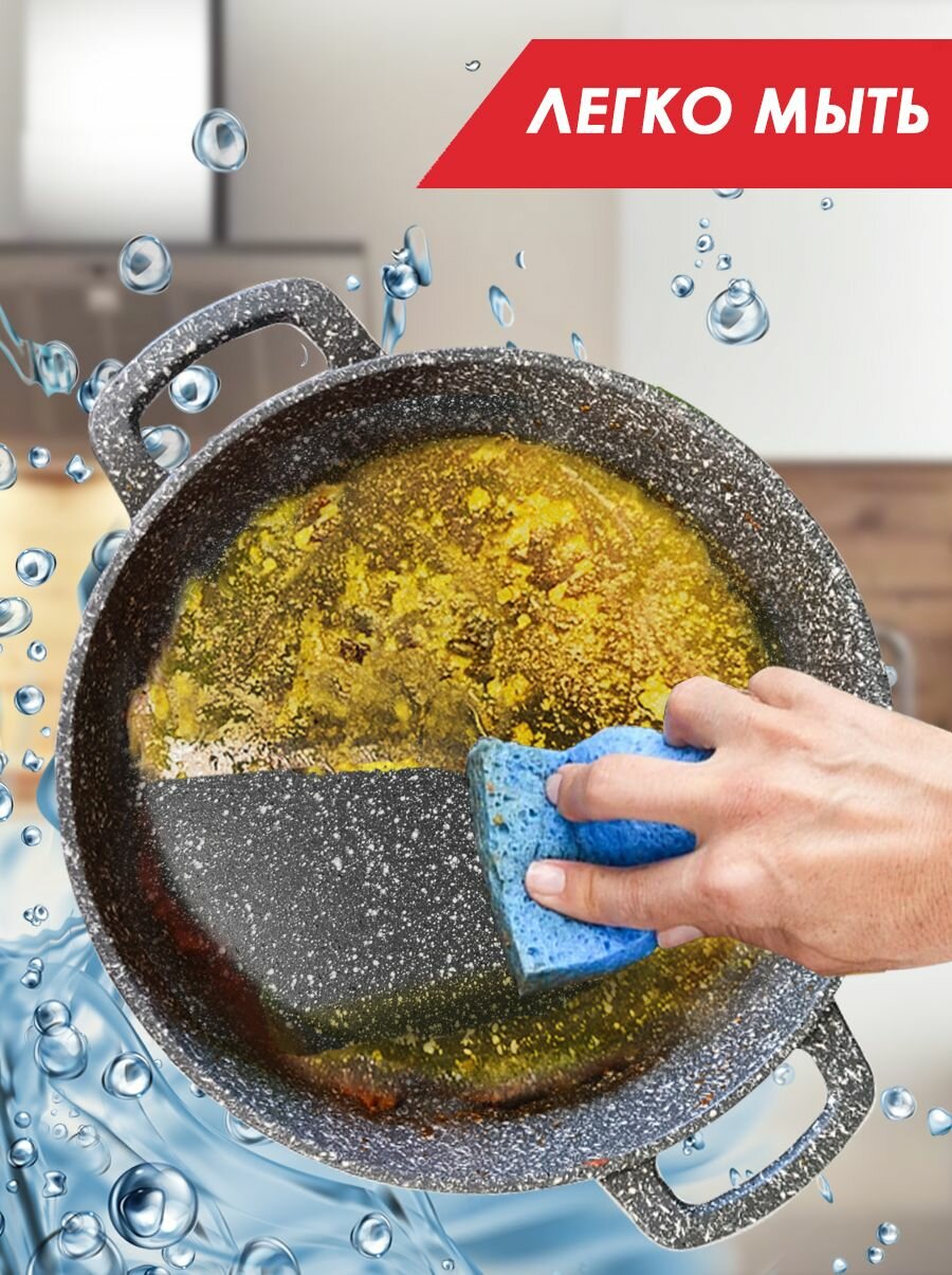 Жаровня антипригарная с крышкой 26см Мрамор ТМ Традиция готовить с любовью