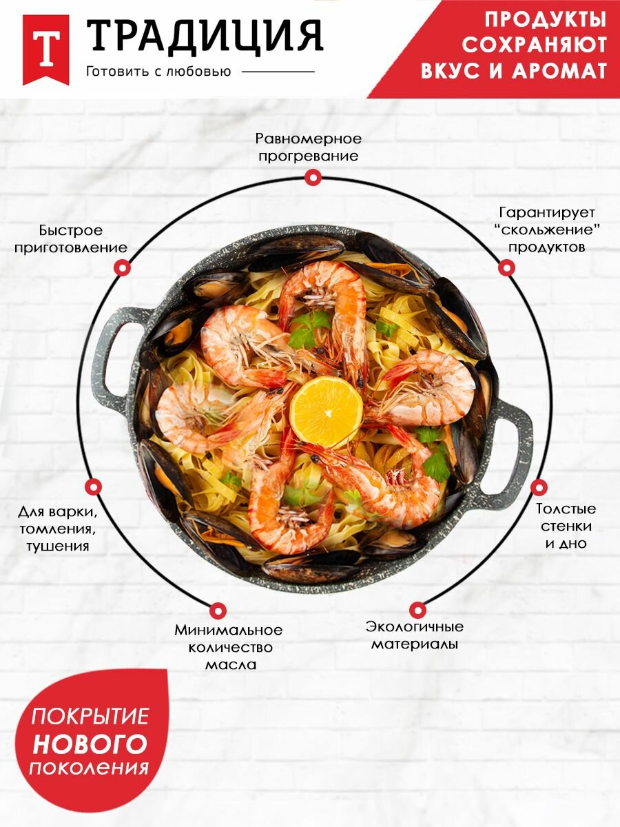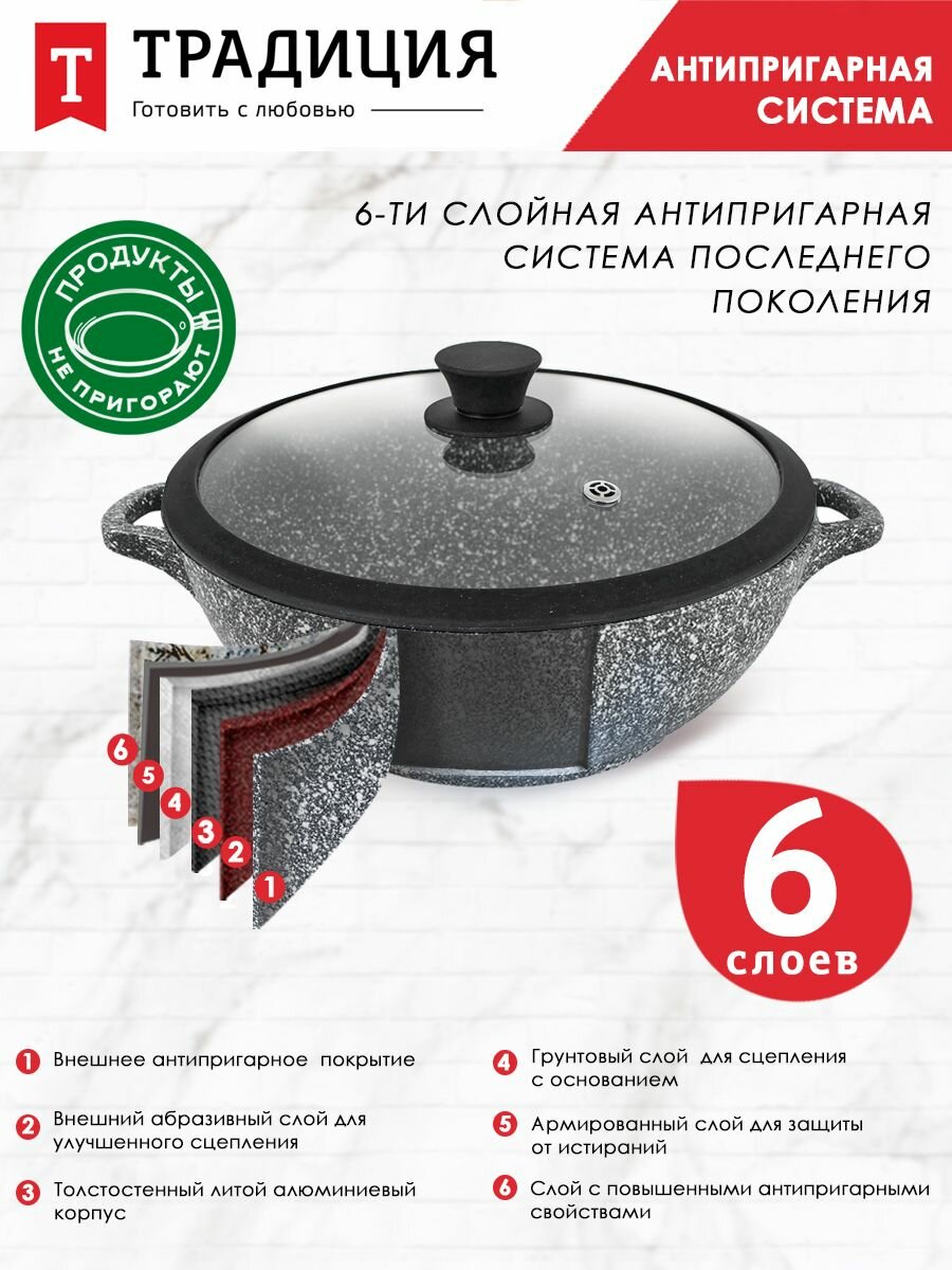 Сковорода Традиция Мрамор индукция ТМ2281И 28 см, антипригарное покрытие, литая