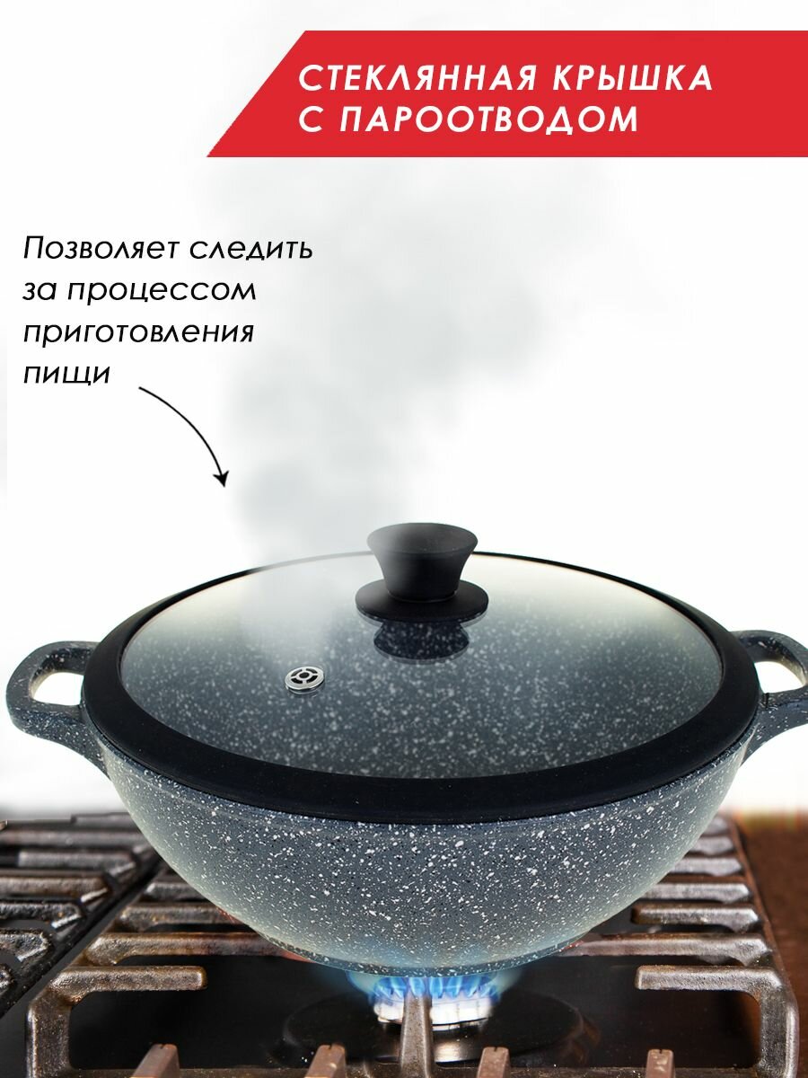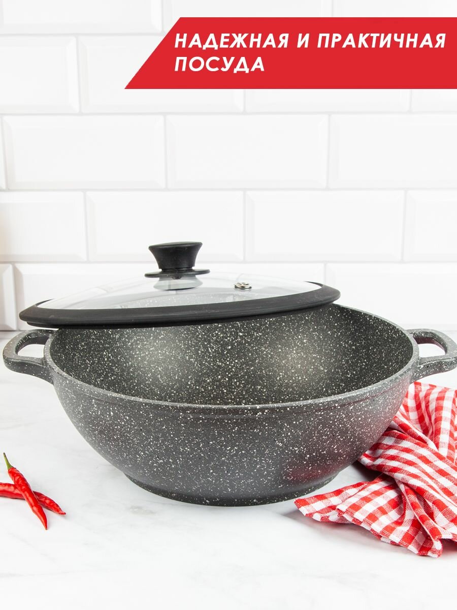 Жаровня антипригарная литая со стеклянной крышкой ( силиконовый ободок) 26 см Гранит ТМ Традиция готовить с любовью