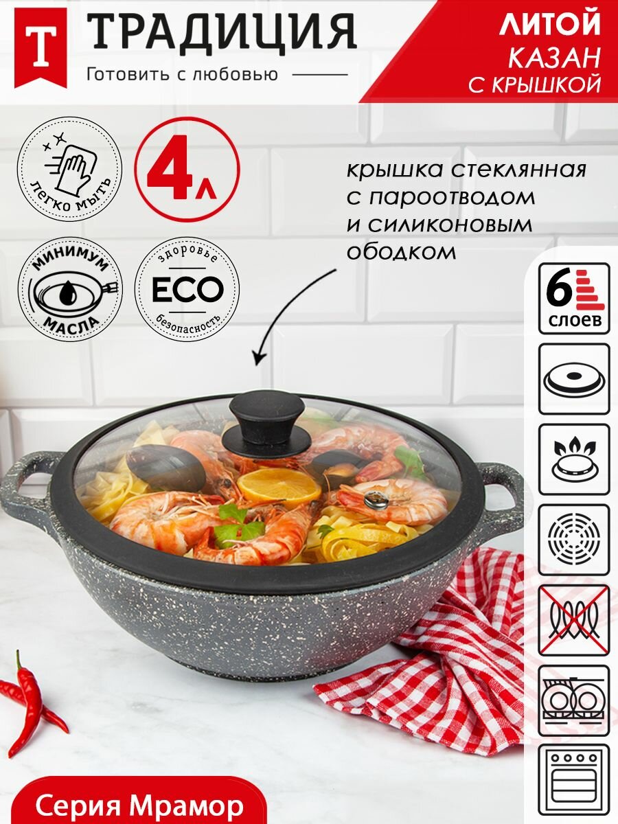 Купить Казан Традиция Мрамор 28см 4,0л (287) .