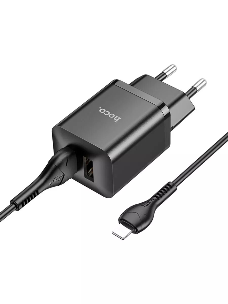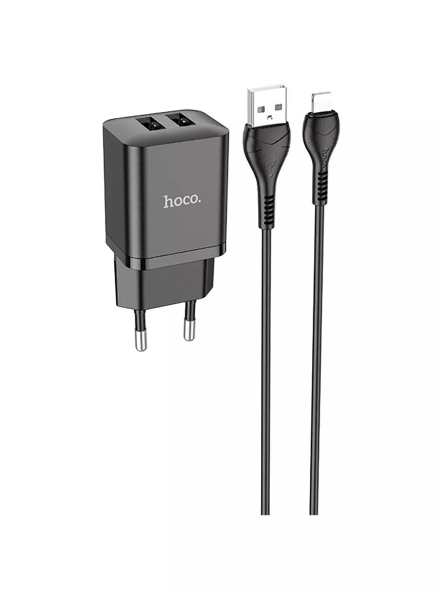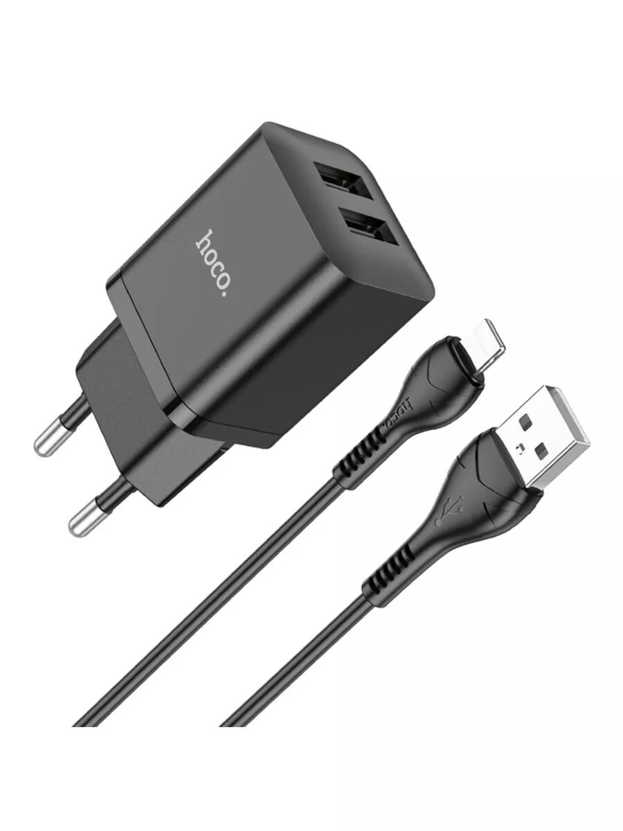 Зарядное устройство Hoco C88A, чёрный (2xUSB, 2.4A, кабель 8pin)