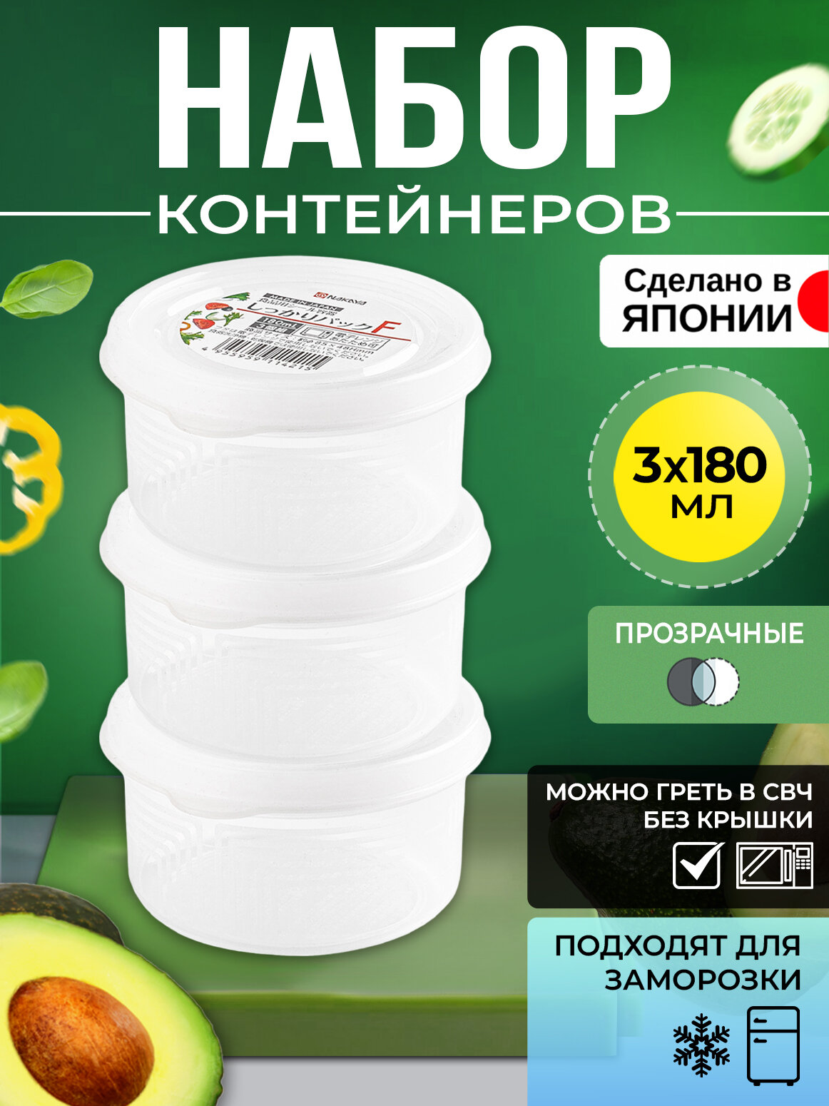 Набор герметичных контейнеров для продуктов 180 мл (F), 3 шт., Д 8,5*4,8 см, K-142, NAKAYA