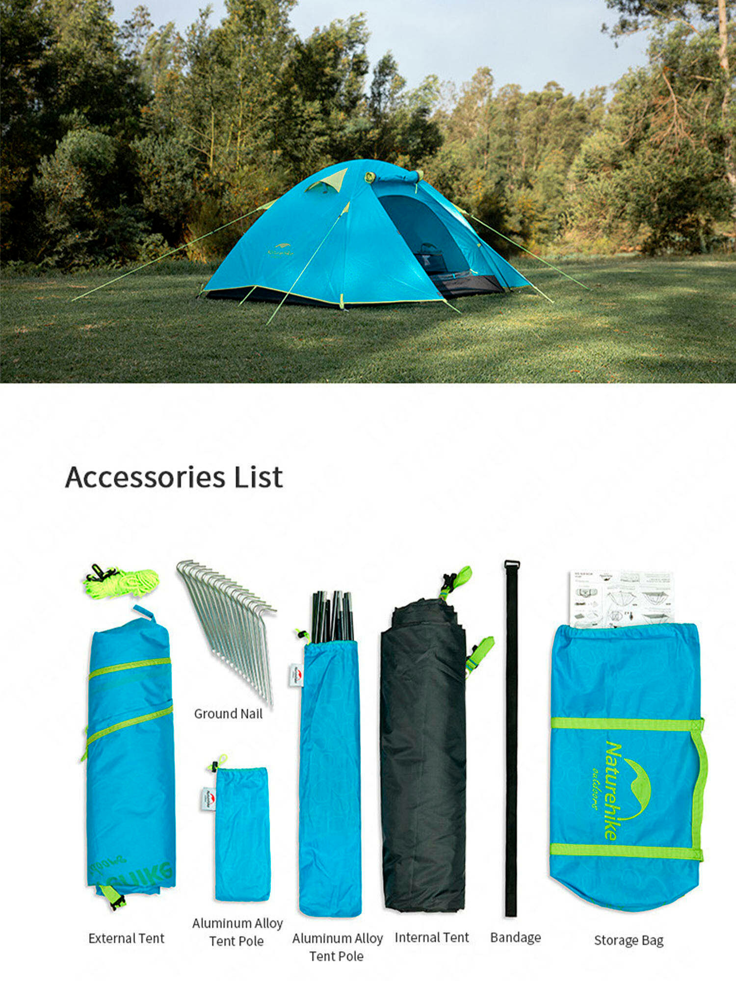 Купить Палатка Naturehike P-Series Aluminum Pole Tent With New Material 210T65D Embossed Design 4 man Sea Blue