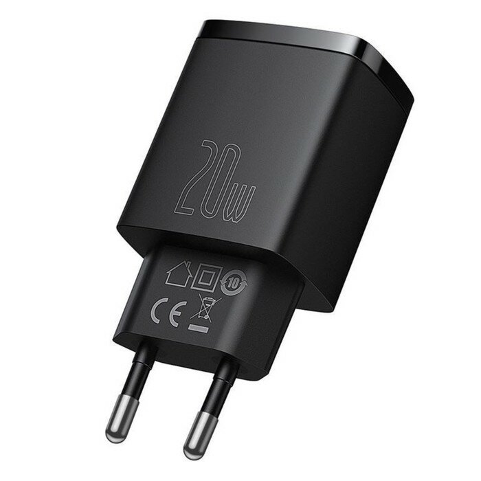 Сетевое зарядное устройство с быстрой зарядкой Baseus Compact 20вт 1USB/1C, черное